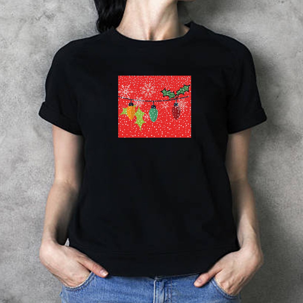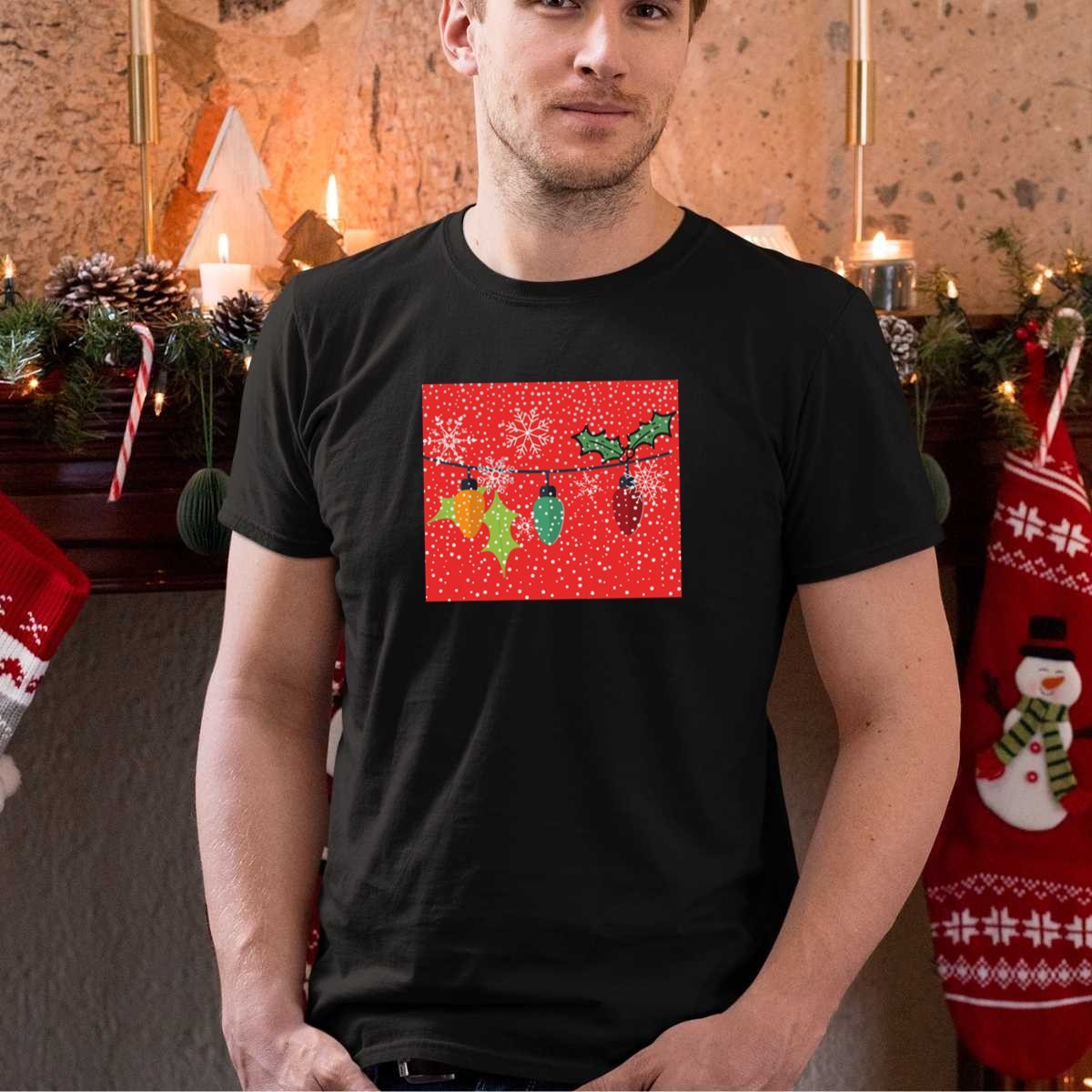 Be the first to review “Christmas Lights Holly And Snowflakes T Shirt”