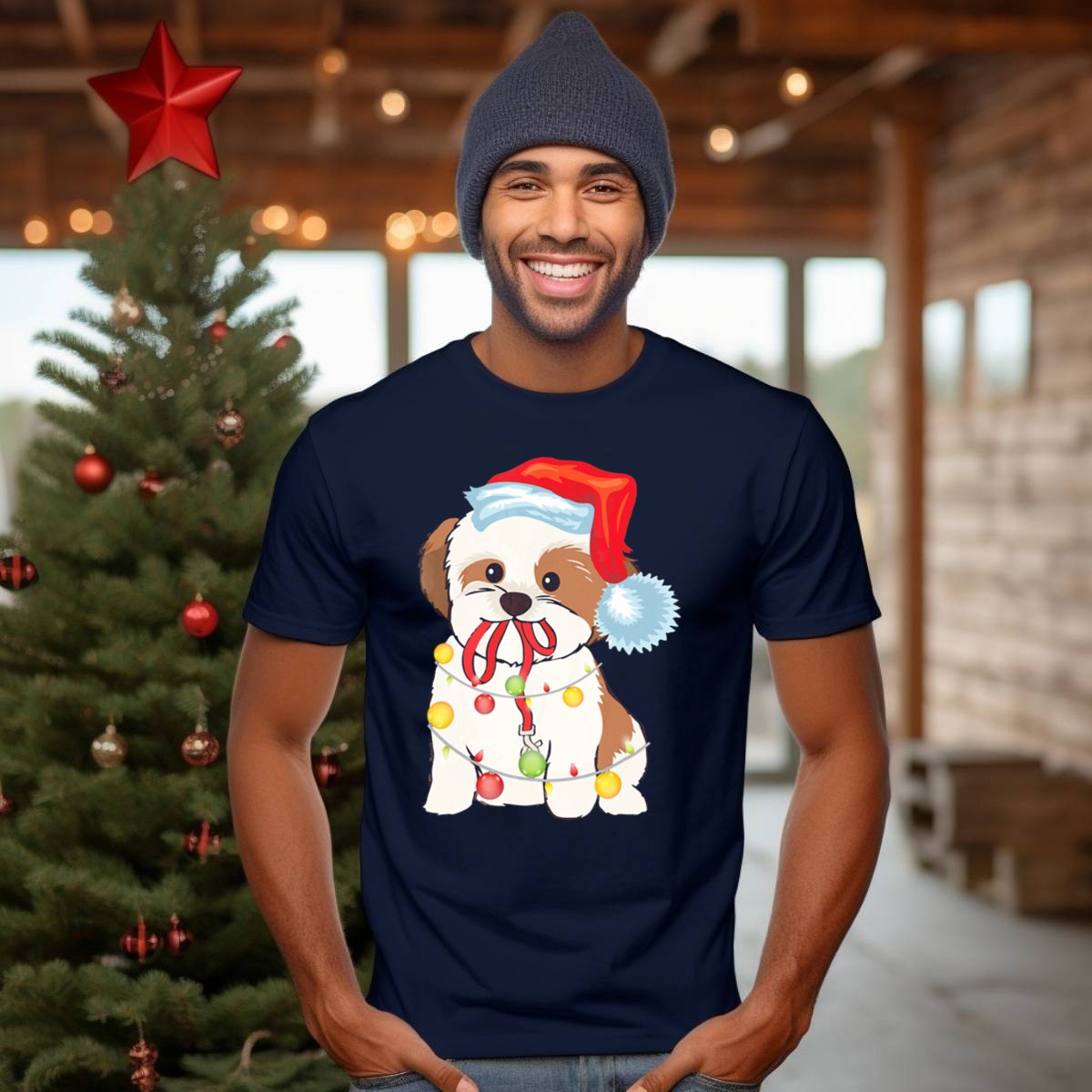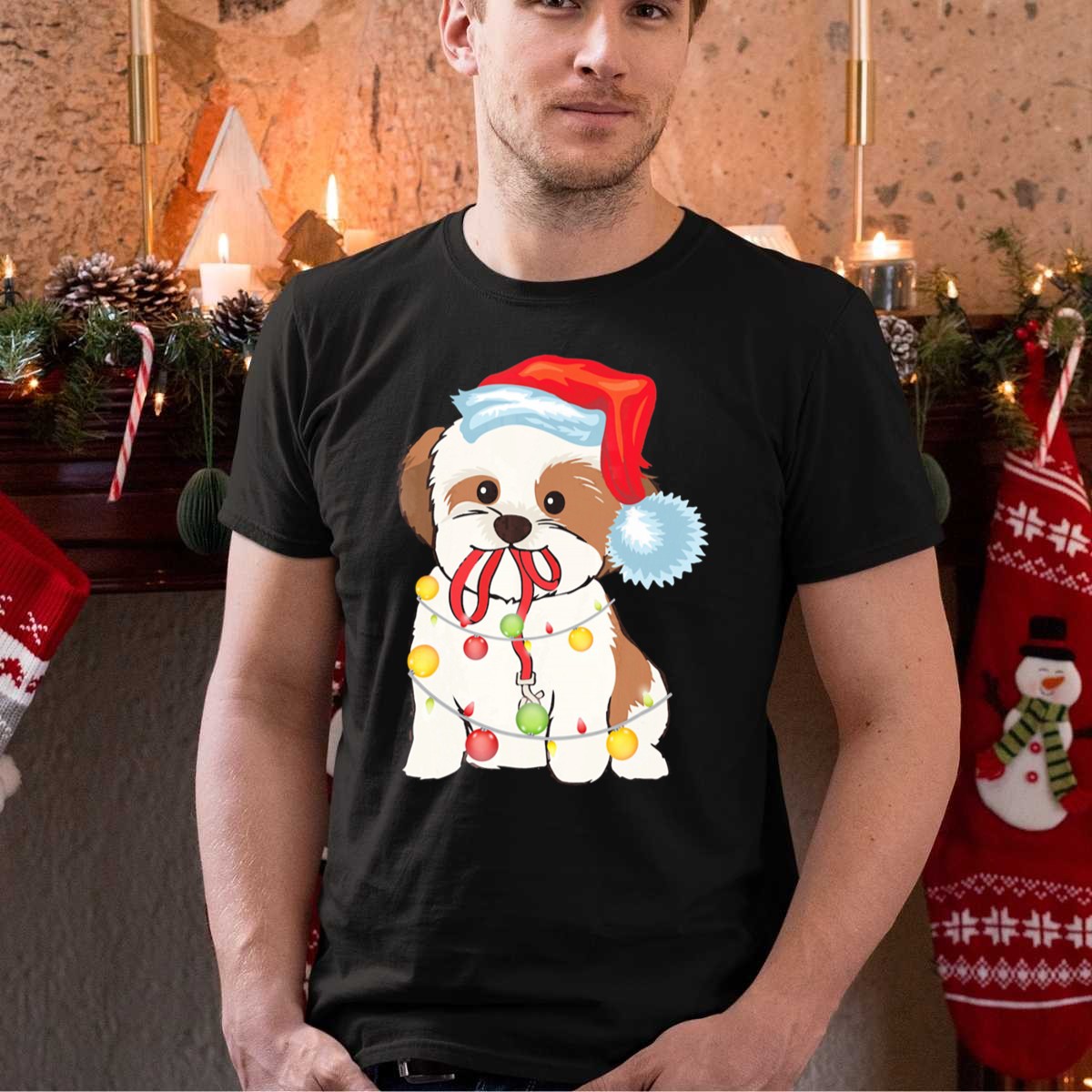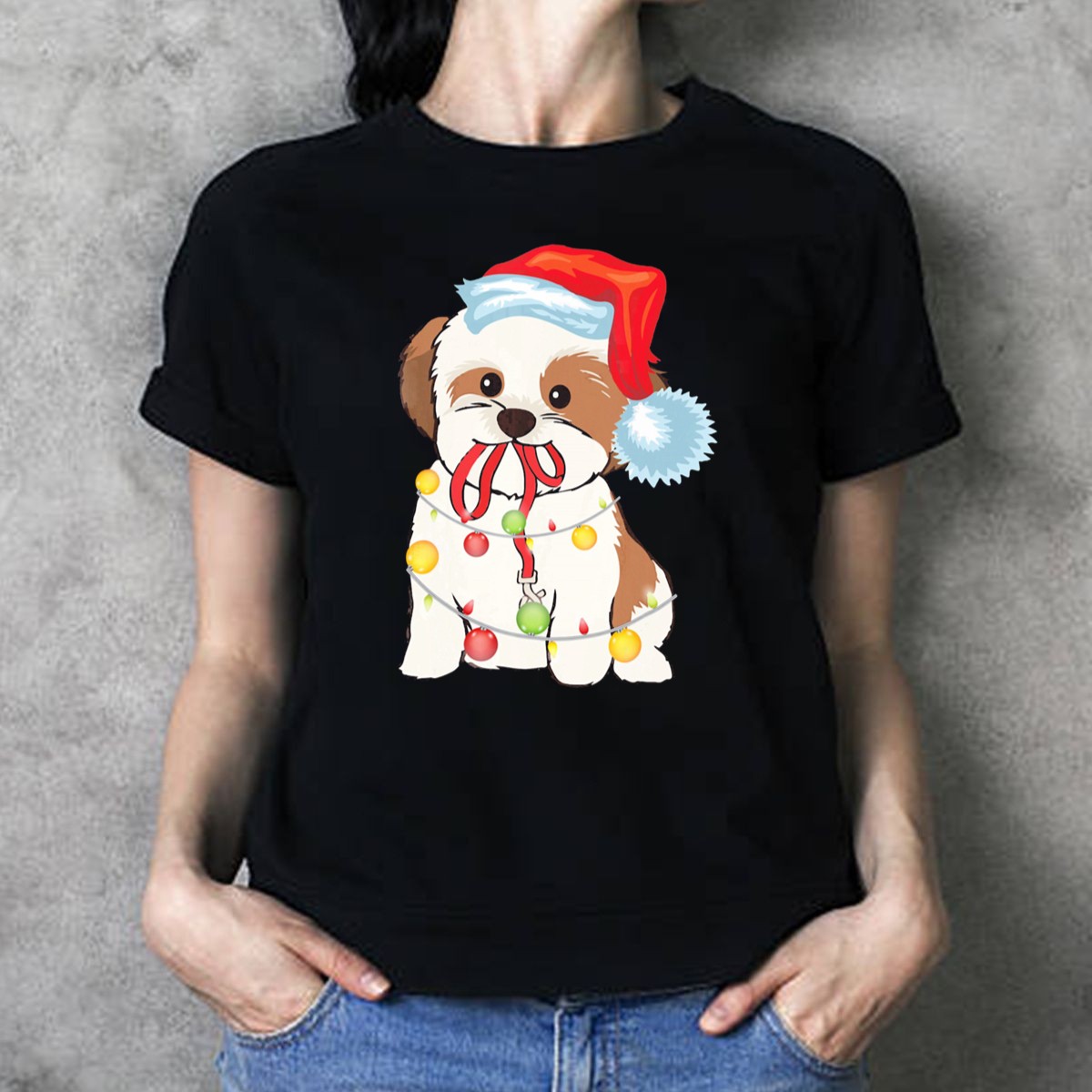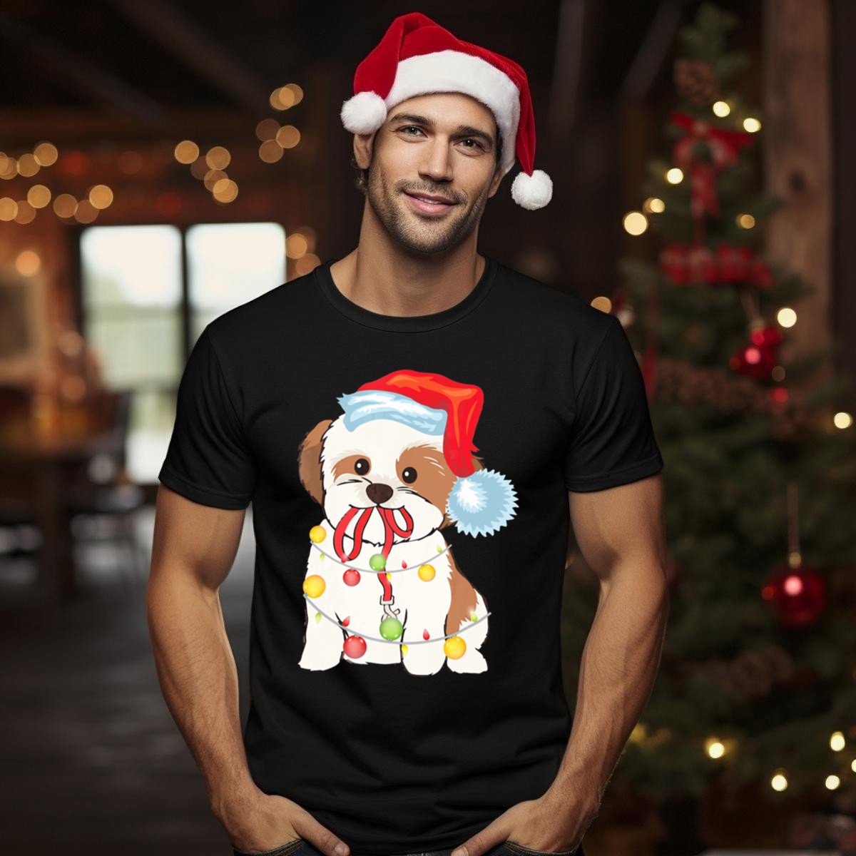 Celebrate the holiday season with our charming Christmas Lights Shih Tzu T-Shirt, featuring an adorable pup donning a festive Santa hat surrounded by colorful ornaments. Perfect for dog lovers and holiday enthusiasts alike, this shirt is the ideal choice for casual gatherings, themed events, or simply spreading cheer during your daily wear. Made with love in the USA, this unique fan-made design will surely bring a smile to everyone’s face!
