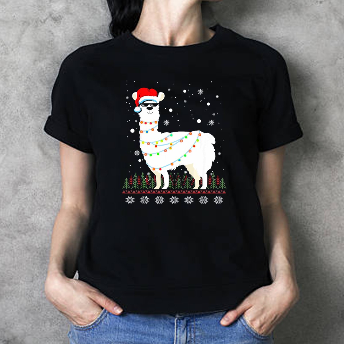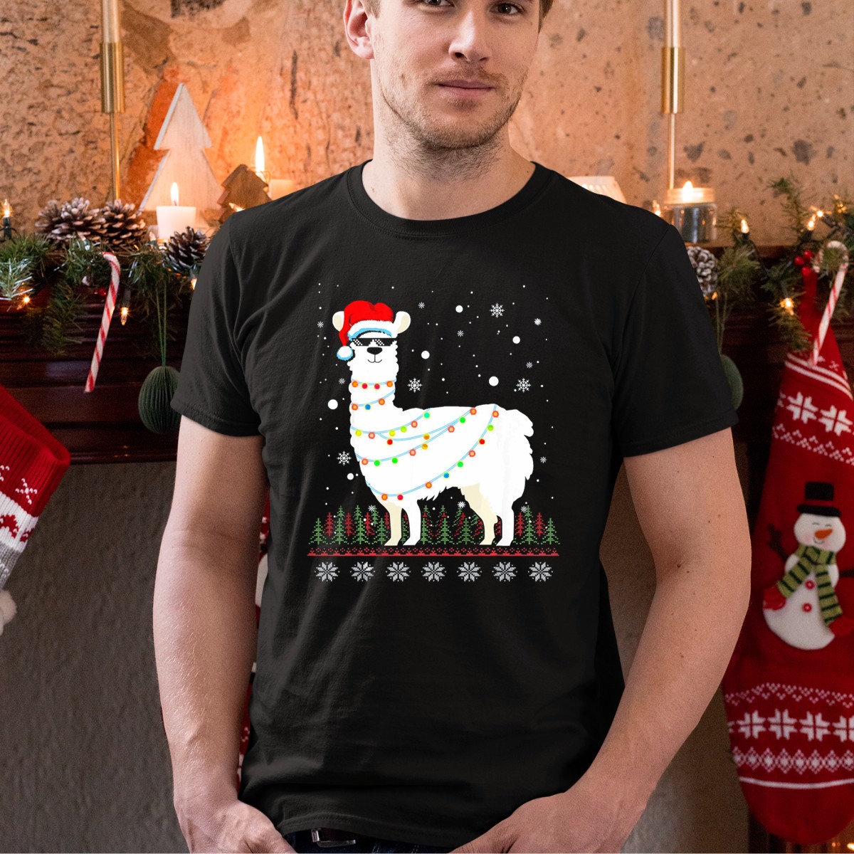 Get ready to spread holiday cheer with our Christmas Llama Santa Hat Glasses Ugly Sweater Lights Snowflakes Trees T-Shirt! Perfect for llama lovers and festive souls, this shirt adds a playful touch to your holiday celebrations. Whether you’re attending a themed party, enjoying a cozy family gathering, or just making your daily errands a bit more fun, this fan-made design will keep you in the holiday spirit all season long. Printed in the USA, it combines comfort with a unique style that’s sure to draw smiles.