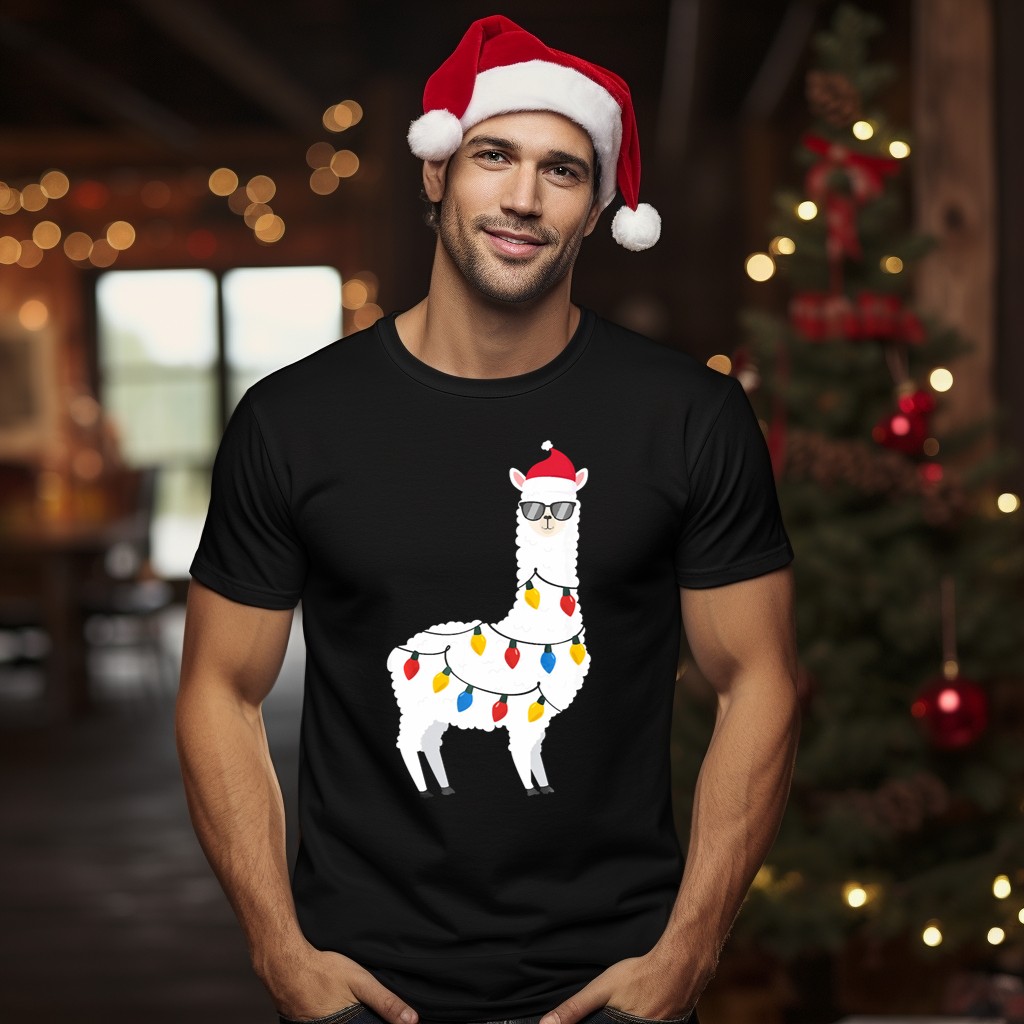 Get into the festive spirit with our Christmas Llama Santa Hat Sunglasses Alpaca T-Shirt! Perfect for animal lovers and holiday enthusiasts alike, this fun and quirky design is ideal for casual wear, themed events, or simply spreading cheer during the holiday season. Made with fan-made artistry and printed right here in the USA, this shirt combines comfort and style, making it a unique addition to your wardrobe.