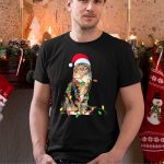 Christmas Maine Coon Cat With Santa Hat And Christmas Lights T Shirt