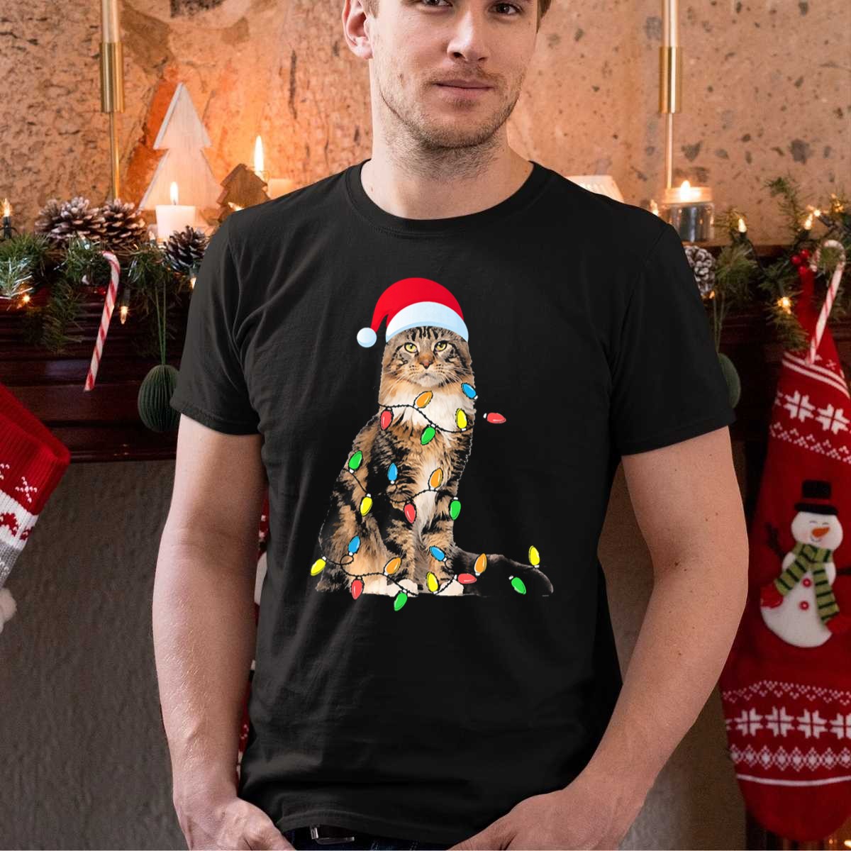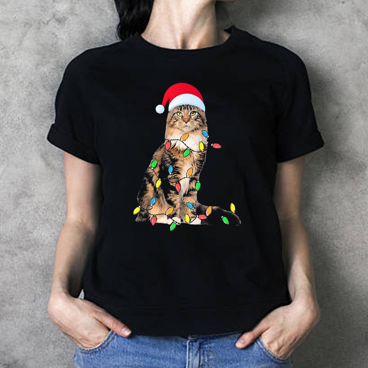 Be the first to review “Christmas Maine Coon Cat With Santa Hat And Christmas Lights T Shirt”