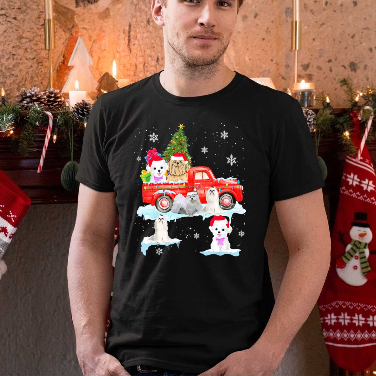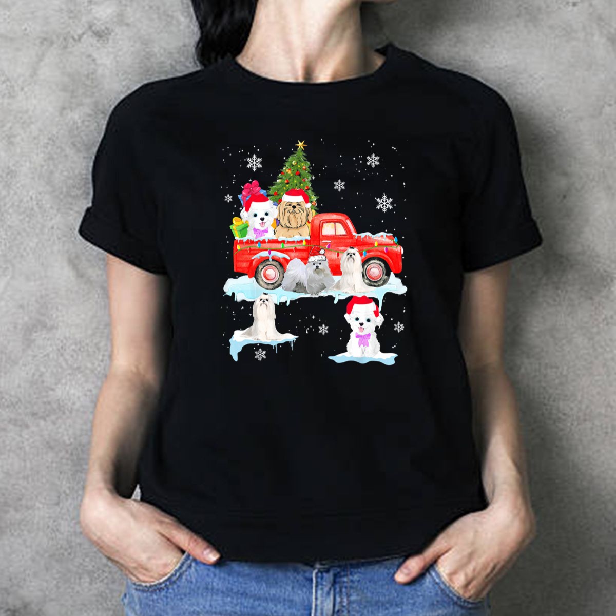Celebrate the joy of the holiday season with our Christmas Maltese Dogs Celebrating On Red Truck With Tree And Snowflakes T-Shirt. This delightful graphic tee is perfect for dog lovers and holiday enthusiasts alike, making it an ideal choice for casual gatherings, themed events, or simply adding a festive touch to your daily wear. Crafted for comfort and style, this fan-made design captures the spirit of Christmas, bringing cheer to every occasion.