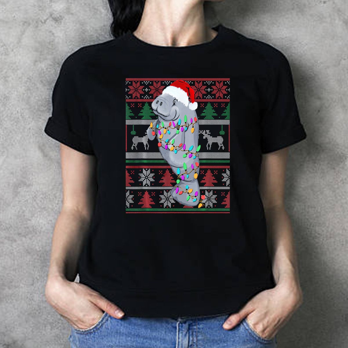 Be the first to review “Christmas Manatee Wrapped In Holiday Lights And Santa Hat T Shirt”
