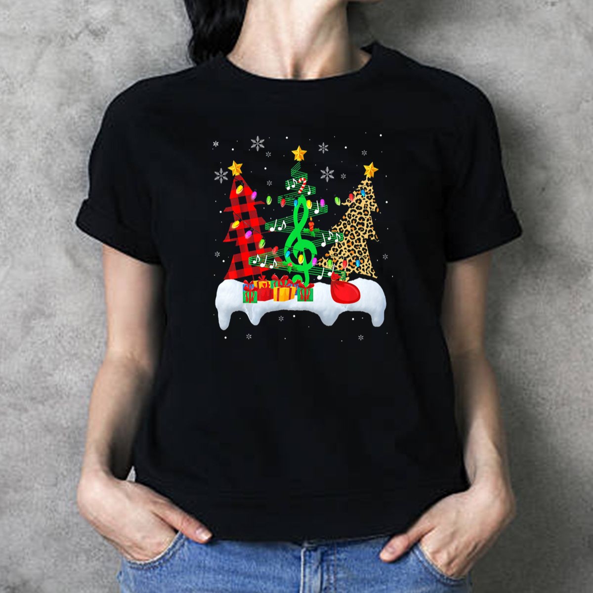 Celebrate the holiday season with our Christmas Music Teacher T-Shirt, featuring a charming design of three leopard print trees adorned with treble clefs and delicate snowflakes. Perfect for music educators and enthusiasts alike, this shirt is ideal for casual wear, festive gatherings, or themed events. Its unique fan-made print, crafted with care in the USA, makes it a standout addition to your holiday wardrobe that showcases your love for music and teaching.