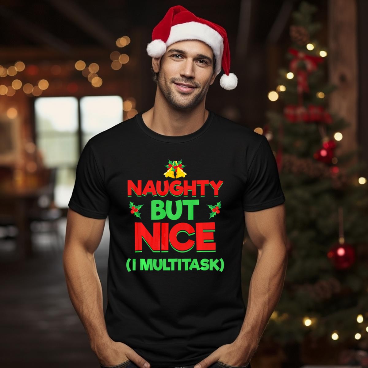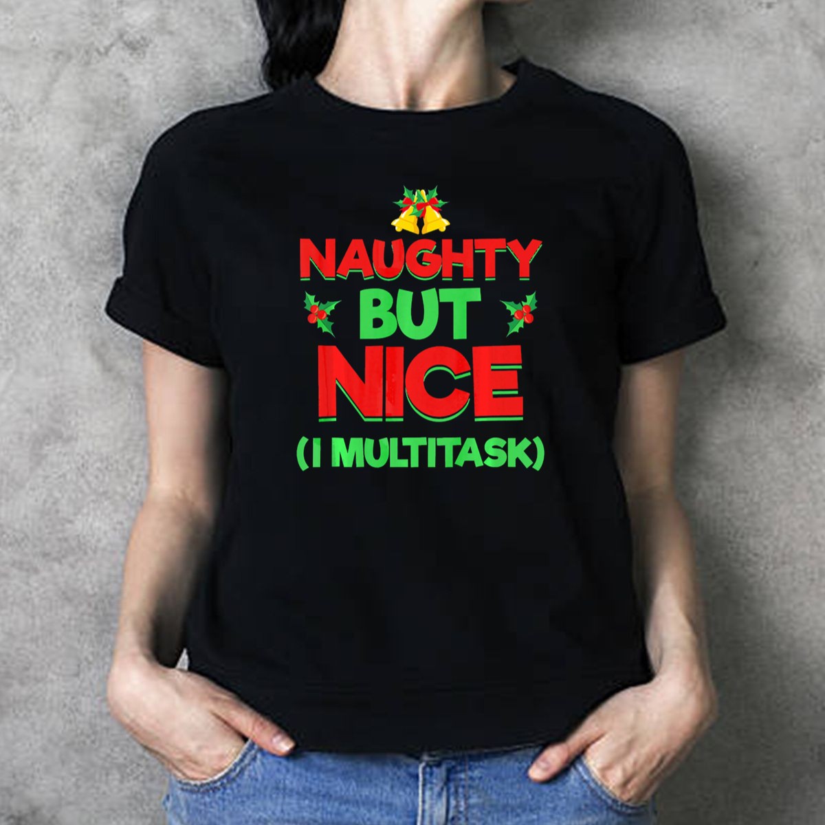 Be the first to review “Christmas Naughty But Nice I Multitask Festive Holiday Bells And Holly T Shirt”