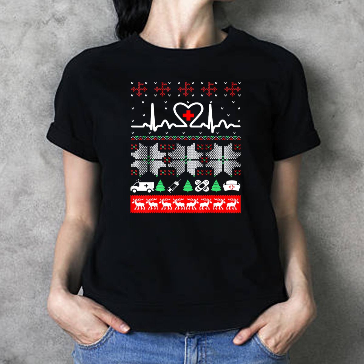 Celebrate the holiday season with our Christmas Nurse CNA Doctor Ugly Sweater Heartbeat Ambulance Reindeer T-Shirt! Perfect for healthcare heroes, this festive design showcases your passion for nursing while spreading cheer at themed events, casual outings, or daily wear. Made for those who love to combine their profession with holiday spirit, this shirt is a must-have for anyone looking to stand out during the season!