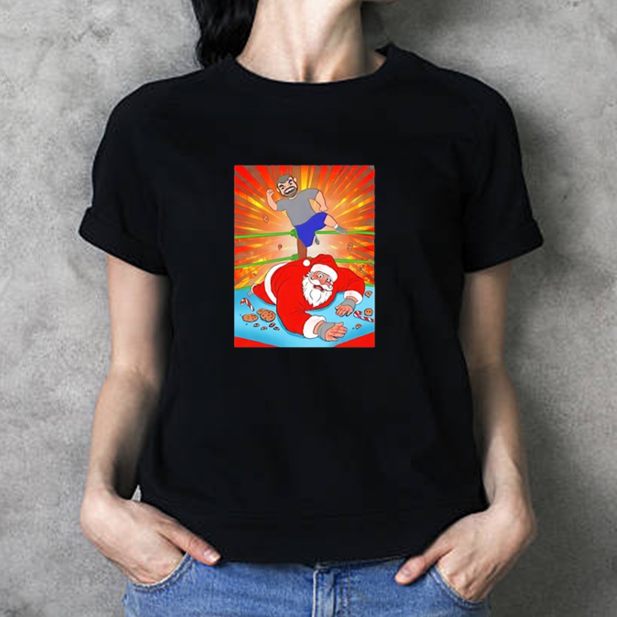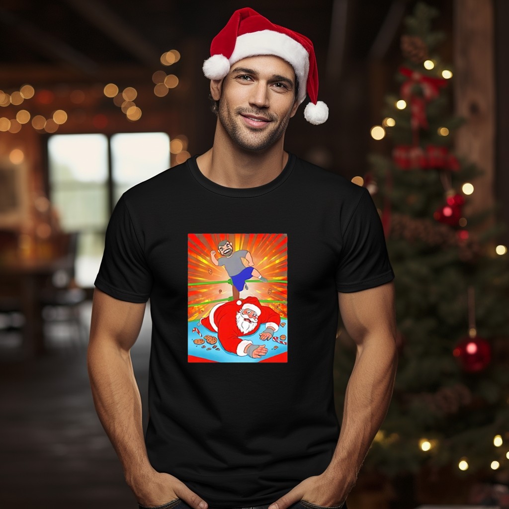 Get ready to bring some festive fun to your wardrobe with the Christmas Of Carnage Santa Wrestling Chaos Cookies T-Shirt! Perfect for wrestling fans and holiday enthusiasts alike, this unique tee combines a playful Christmas theme with a hint of chaos, making it an ideal choice for casual wear, themed events, or just lounging around during the holiday season. With its fan-made design proudly printed in the USA, this shirt is sure to spread cheer and laughter wherever you go.