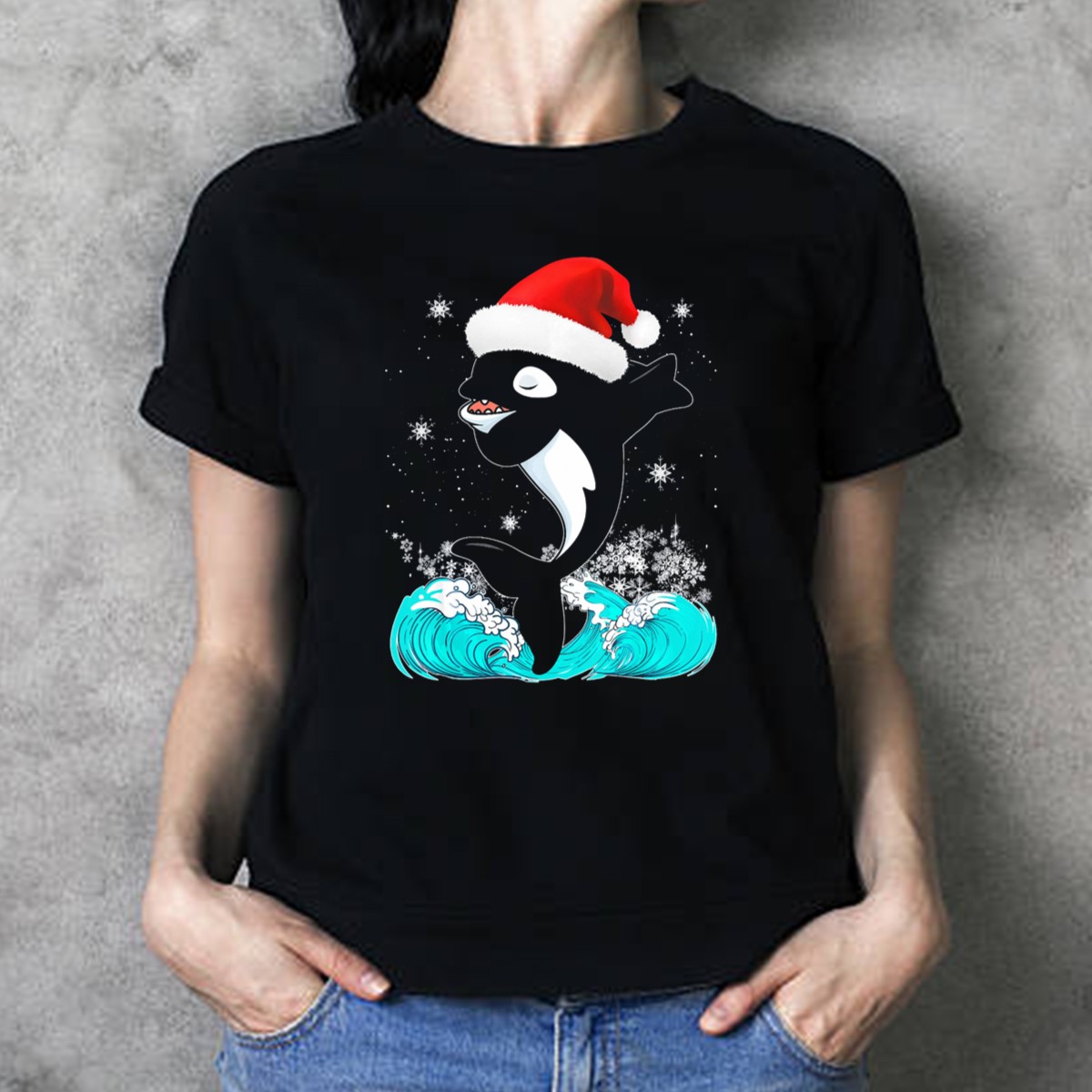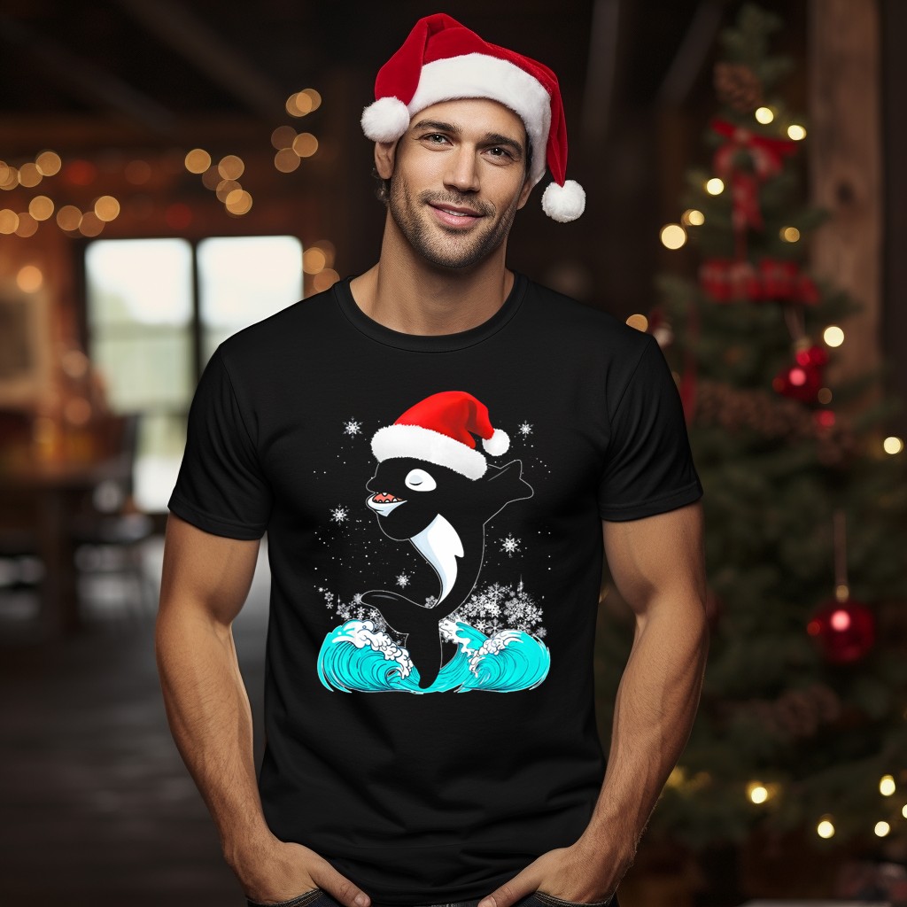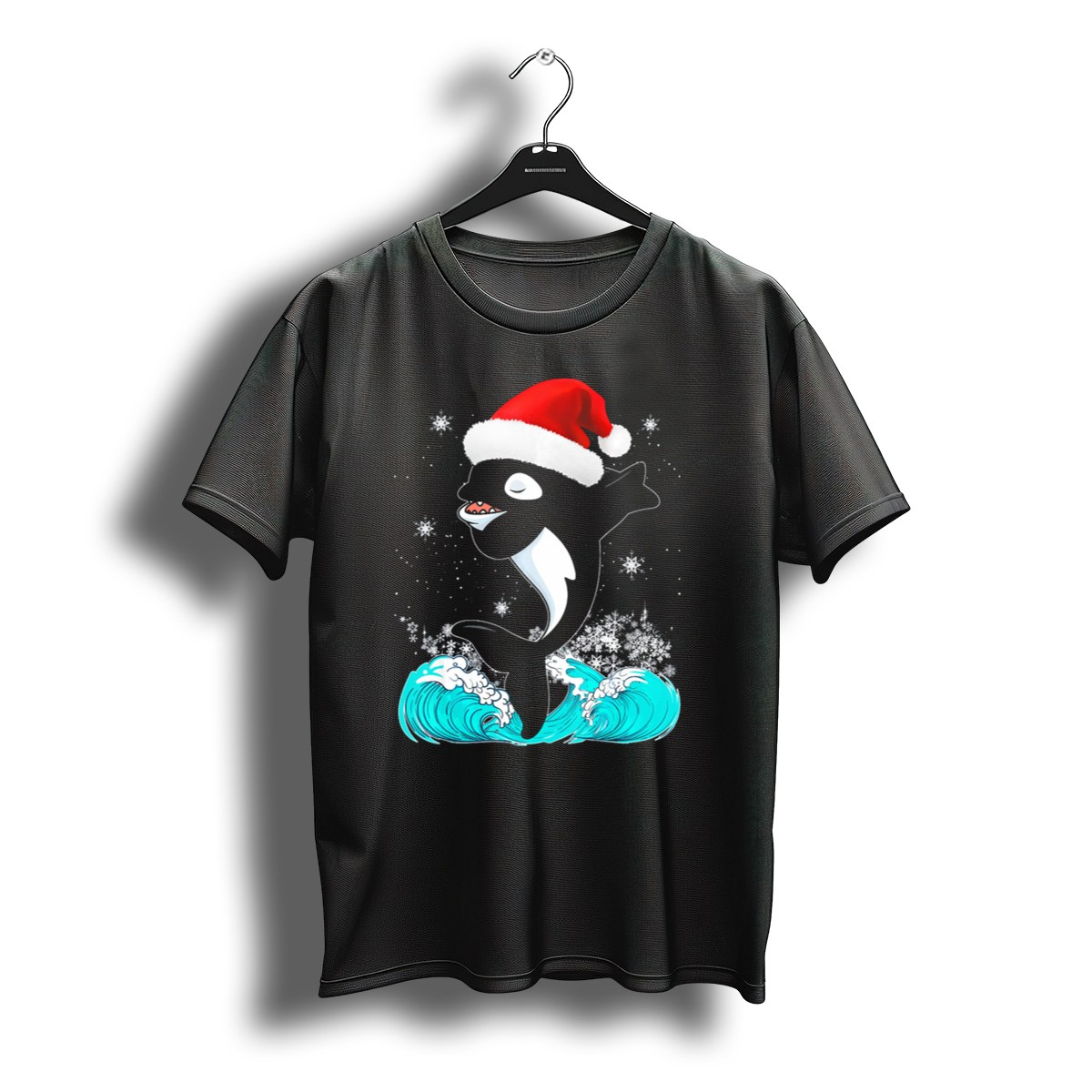 Celebrate the holiday season with our whimsical Christmas Orca Whale In Santa Hat Dabbing Amidst Snowflakes And Waves T-Shirt! Perfect for ocean lovers and festive spirits alike, this fun and unique design brings a splash of joy to your casual wear. Whether you’re attending a themed event, enjoying a cozy gathering with friends, or just looking to spread some cheer in your daily life, this shirt is sure to make you the center of attention. Plus, it’s fan-made and proudly printed in the USA!