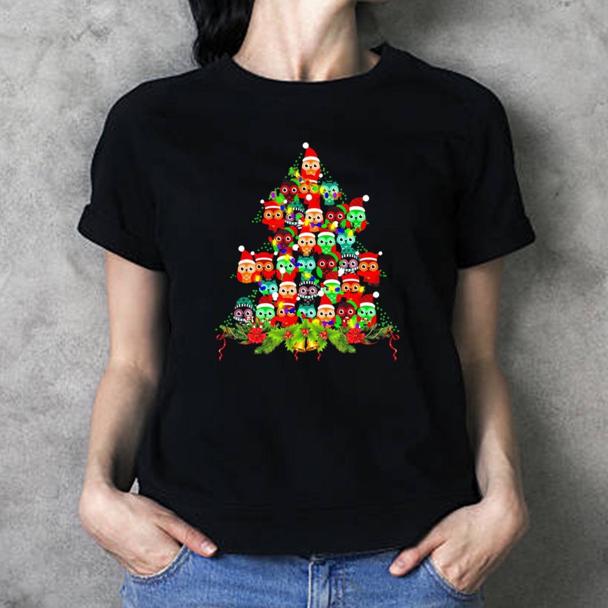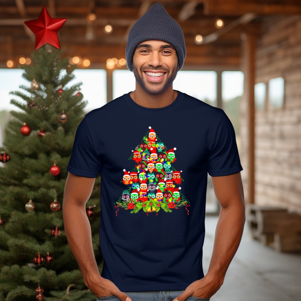 Get into the holiday spirit with our Christmas Owls In Santa Hats T-Shirt, a delightful addition to your festive wardrobe! Perfect for owl lovers and holiday enthusiasts alike, this shirt features an adorable design of cheerful owls forming a charming Christmas tree adorned with lights and bells. Whether you’re celebrating at a family gathering, attending a themed event, or simply enjoying daily wear during the festive season, this shirt will surely spread joy and warmth. Proudly printed in the USA, it’s a unique fan-made piece that combines comfort and holiday cheer!