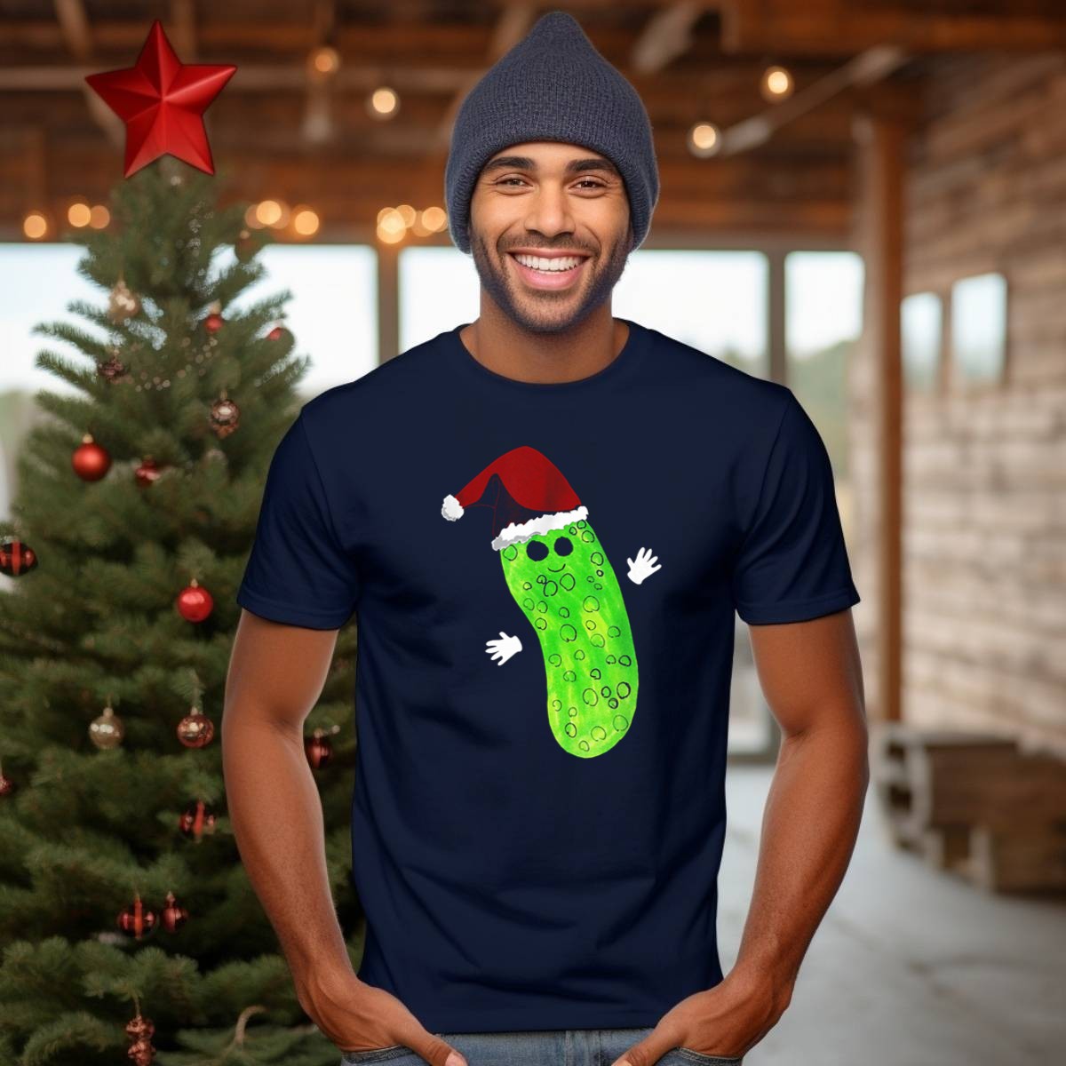 Celebrate the holiday spirit with our whimsical Christmas Pickle Wearing Santa Hat T-Shirt! This fun and festive design is perfect for pickle lovers and anyone looking to add a touch of humor to their holiday wardrobe. Ideal for casual wear, themed events, or daily outings during the festive season, this shirt is sure to spark conversations and spread cheer. Made in the USA, this fan-made design combines comfort and style, making it a unique addition to your seasonal attire.