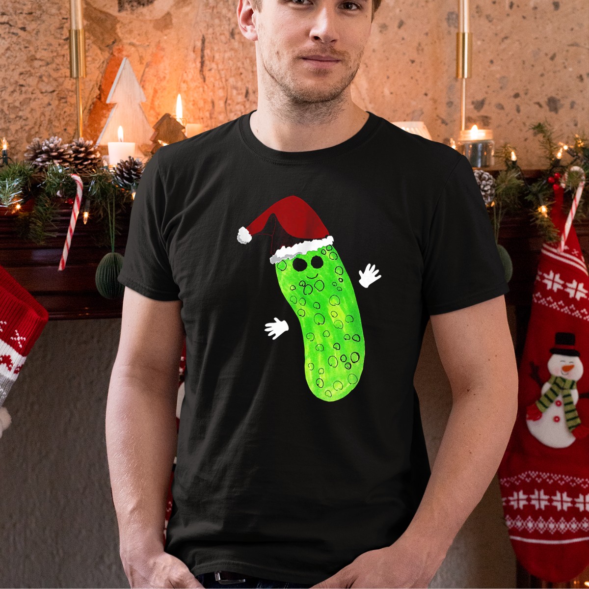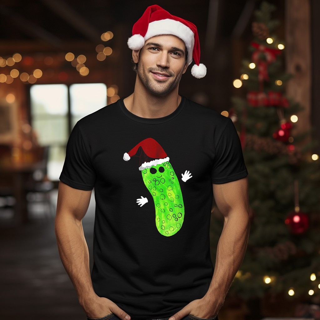 Get into the festive spirit with our Christmas Pickle Wearing Santa Hat T-Shirt! Perfect for pickle lovers and holiday enthusiasts alike, this fun and quirky shirt is ideal for casual gatherings, themed events, or simply spreading holiday cheer wherever you go. Made from high-quality materials and featuring a fan-made design printed right here in the USA, it’s a unique addition to your holiday wardrobe that showcases your playful personality.