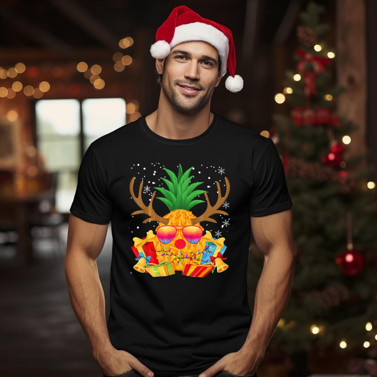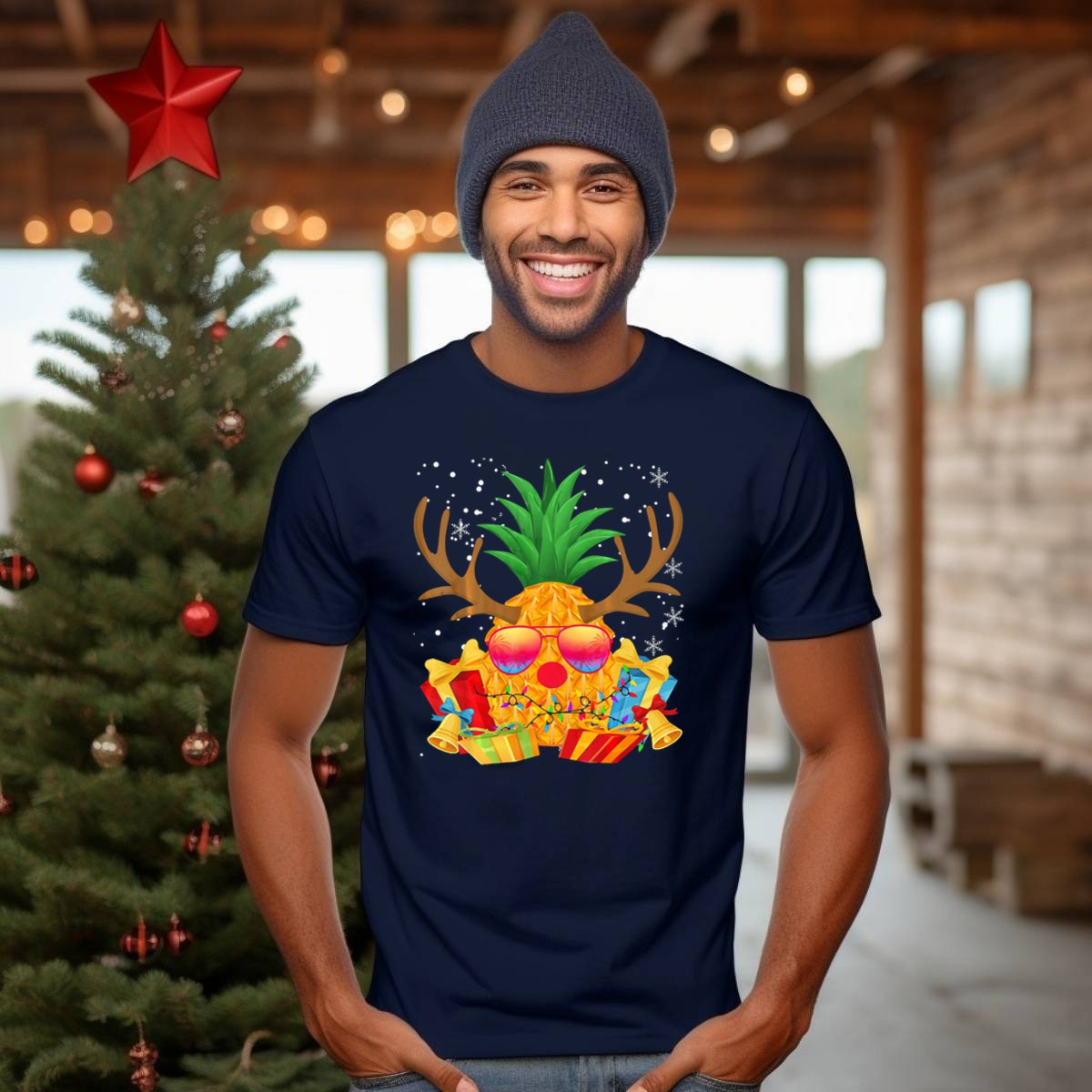 Celebrate the festive season with our Christmas Pineapple Reindeer Holiday T-Shirt! Perfect for pineapple lovers and holiday enthusiasts alike, this fan-made design brings a fun twist to your usual holiday attire. Ideal for casual gatherings, themed events, or just spreading holiday cheer in your daily wear, this unique shirt will surely make you the center of attention during all your celebrations. Printed in the USA, it combines comfort with a playful spirit, making it a must-have for this holiday season!