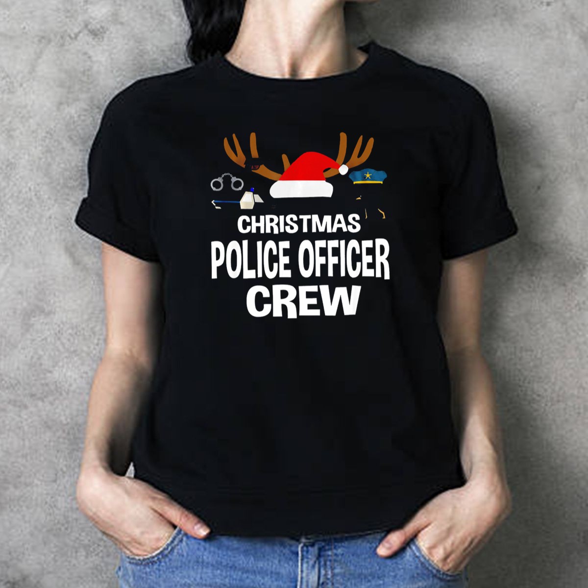 Christmas Police Officer Crew Antlers Santa Hat Handcuffs Badge T Shirt 1
