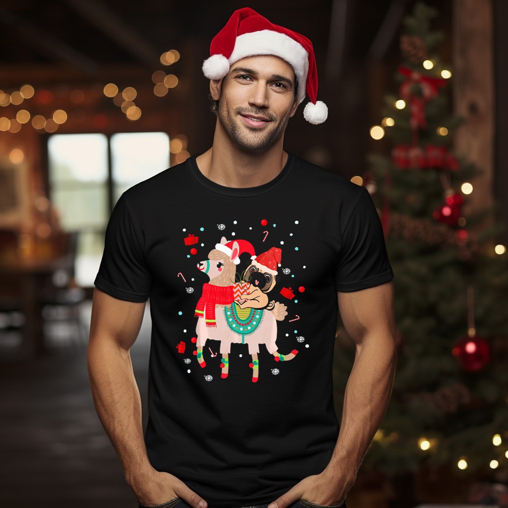 Embrace the festive spirit with our Christmas Pug Llama T-Shirt, featuring an adorable design of pugs and llamas donning Santa hats and surrounded by gifts. Perfect for dog lovers, llama enthusiasts, or anyone looking to spread holiday cheer, this shirt is ideal for casual wear, themed events, or just enjoying the daily festivities. Made with a fan-made design printed in the USA, it’s a unique addition to your holiday wardrobe that showcases your fun side.