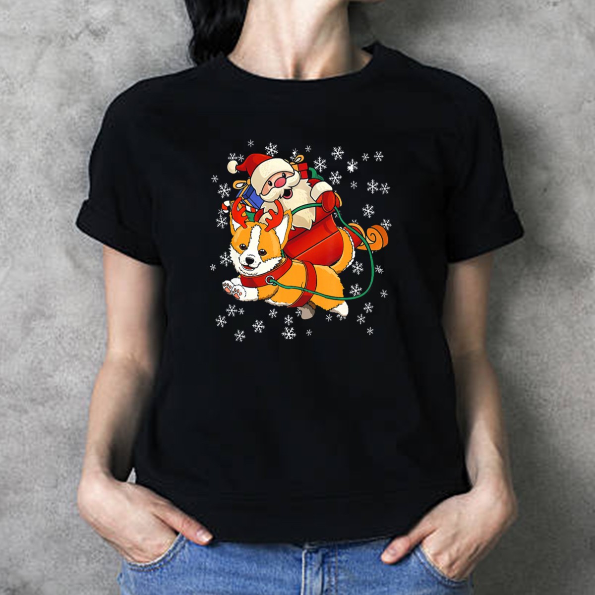 Be the first to review “Christmas Reindeer Corgi With Santa And Snowflakes T-Shirt”