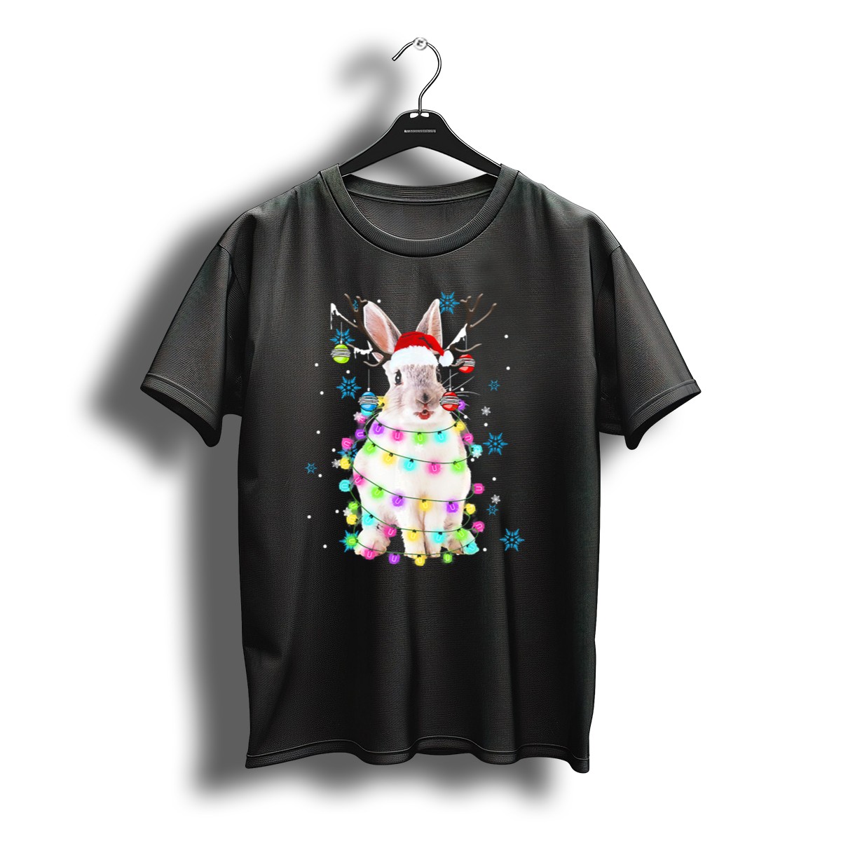 Christmas Reindeer Rabbit With Santa Hat And Festive Lights T-Shirt