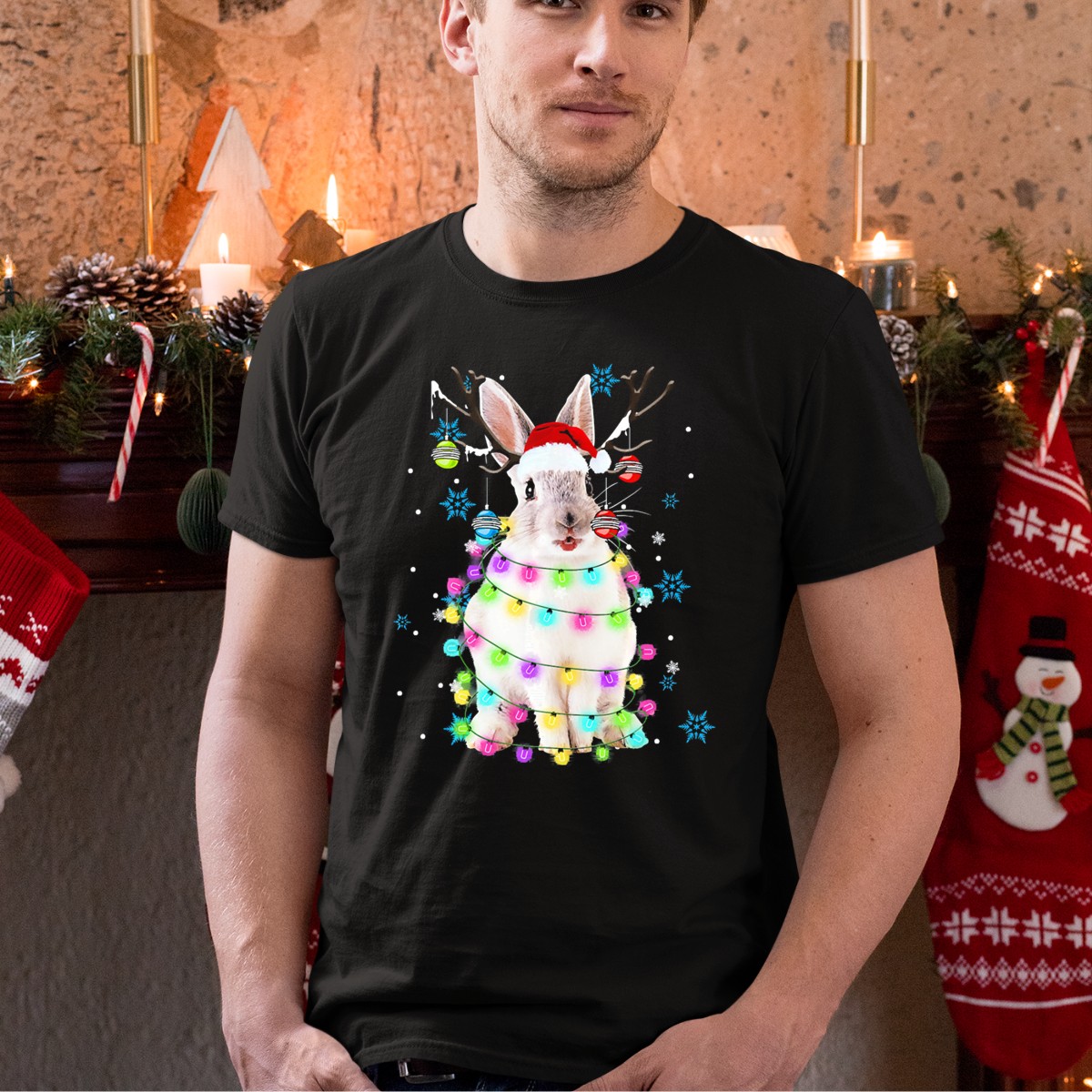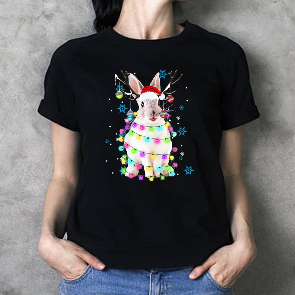 Be the first to review “Christmas Reindeer Rabbit With Santa Hat And Festive Lights T-Shirt”