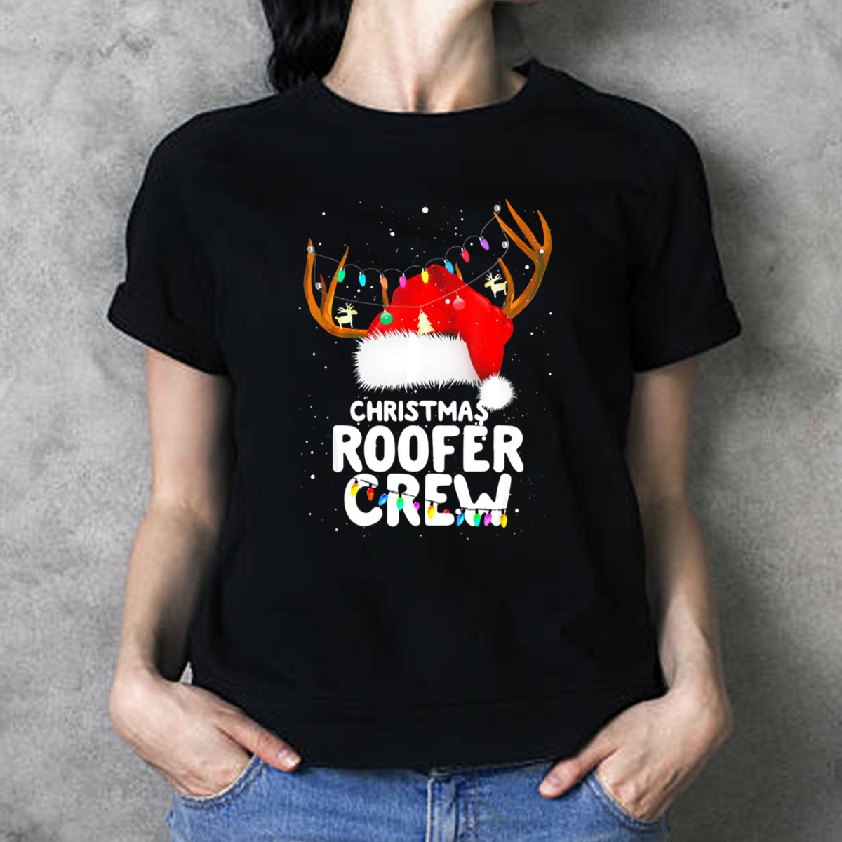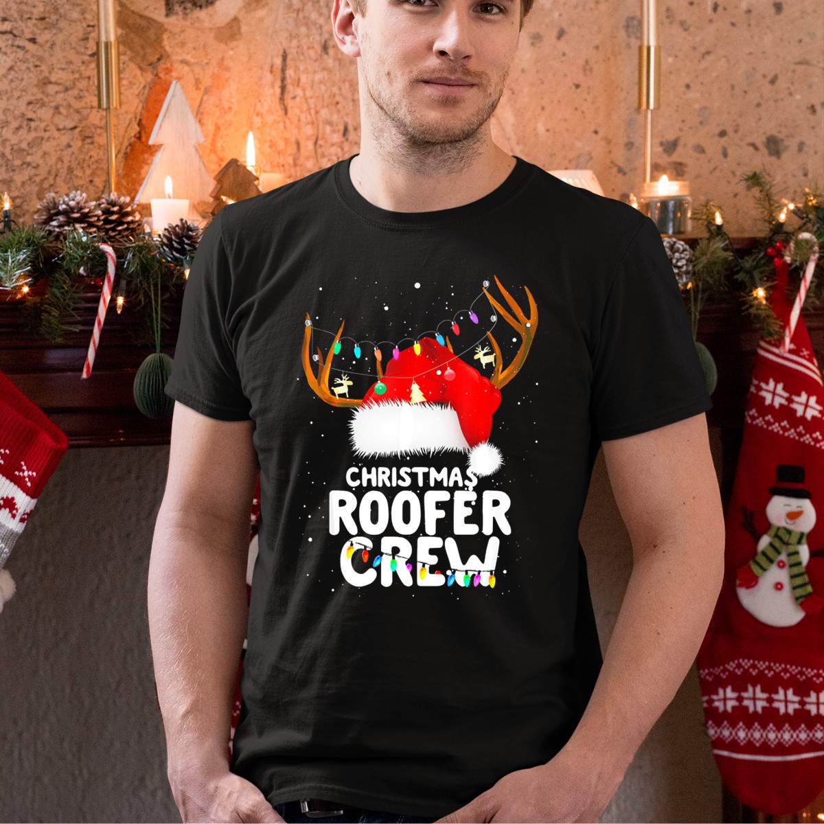Be the first to review “Christmas Roofer Crew Santa Hat Reindeer Lights T-Shirt”