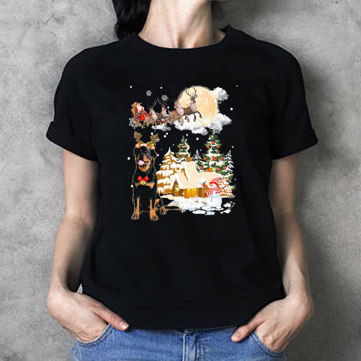 Be the first to review “Christmas Rottweiler Welcomes Santa Sleigh Under Full Moon T-Shirt”