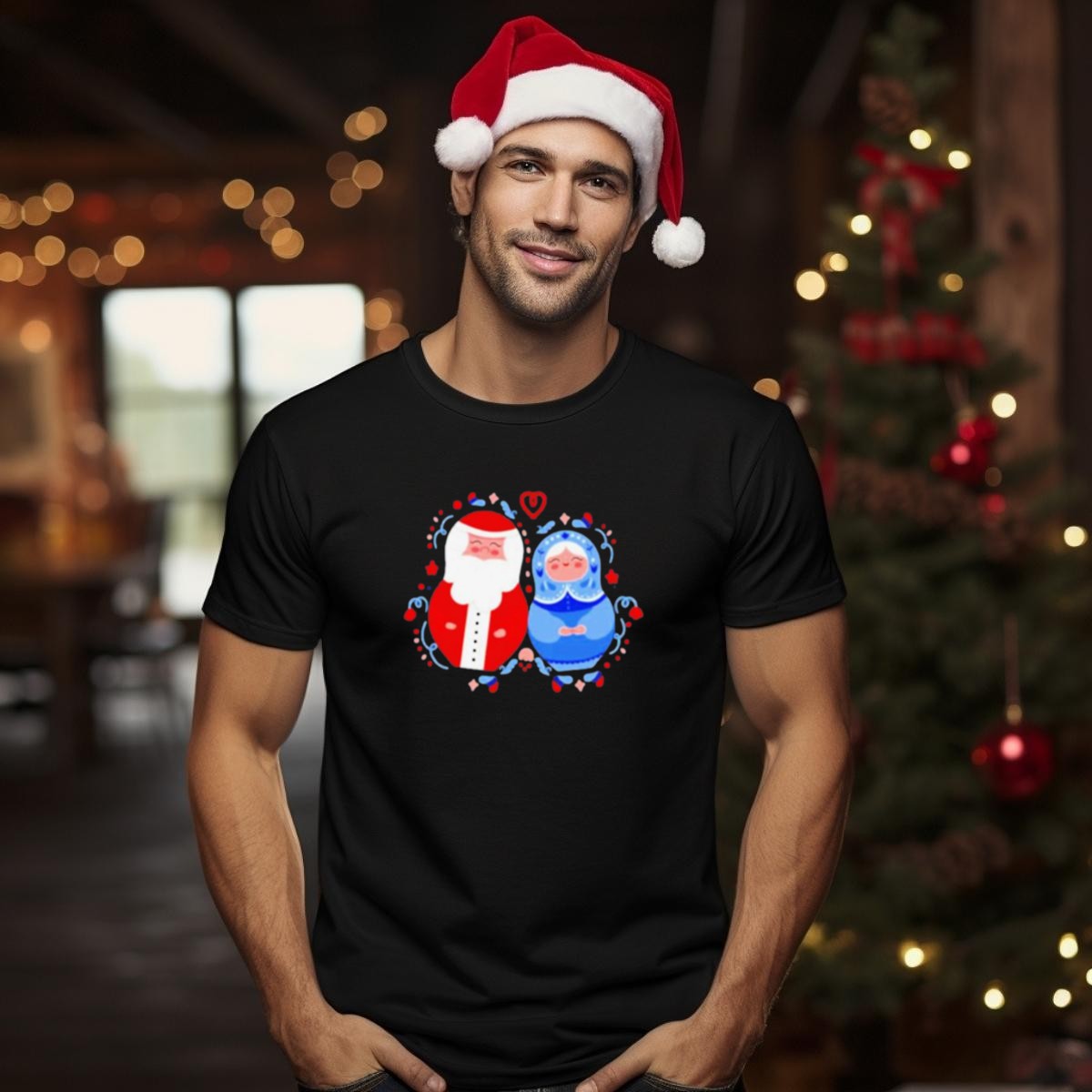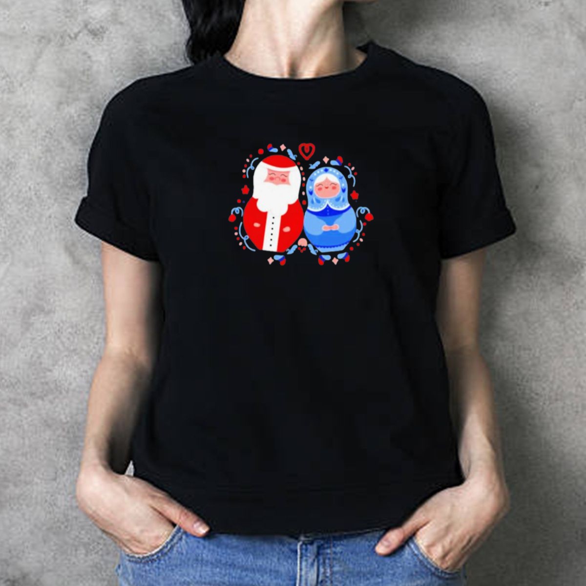 Celebrate the holiday spirit with our Christmas Santa And Snow Maiden Mamushkas T-Shirt! This fan-made design captures the essence of festive cheer, making it the perfect choice for anyone looking to spread joy during the holiday season. Ideal for casual wear, themed events, or daily outings, this tee is sure to become a favorite in your wardrobe. Printed in the USA, it combines unique artistry with comfort, making every moment feel special.