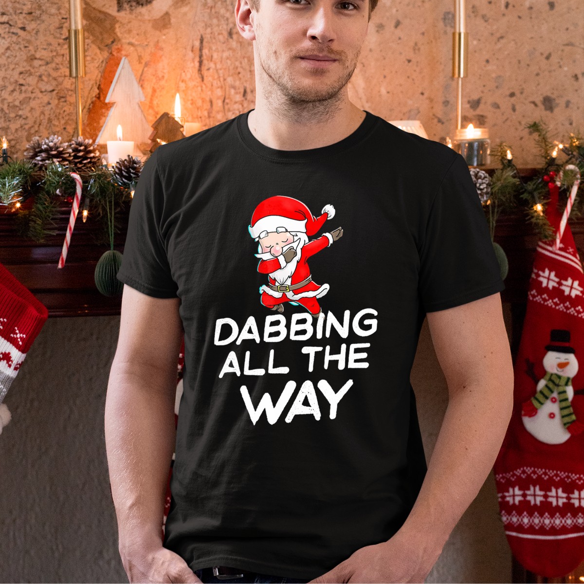 Get ready to spread some holiday cheer with our Christmas Santa Claus Dabbing All The Way T-Shirt! Perfect for festive gatherings, themed events, or just lounging at home, this fun and playful design will surely bring a smile to everyone around you. Made with comfort in mind, this fan-made shirt is printed in the USA and celebrates the joy of the season with a modern twist. Celebrate the holidays with style and a dash of humor!
