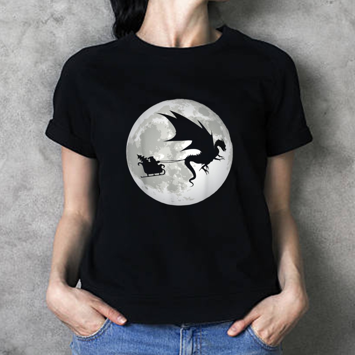 Be the first to review “Christmas Santa Claus Dragon Sleigh Silhouette Flying Past The Moon T-Shirt”