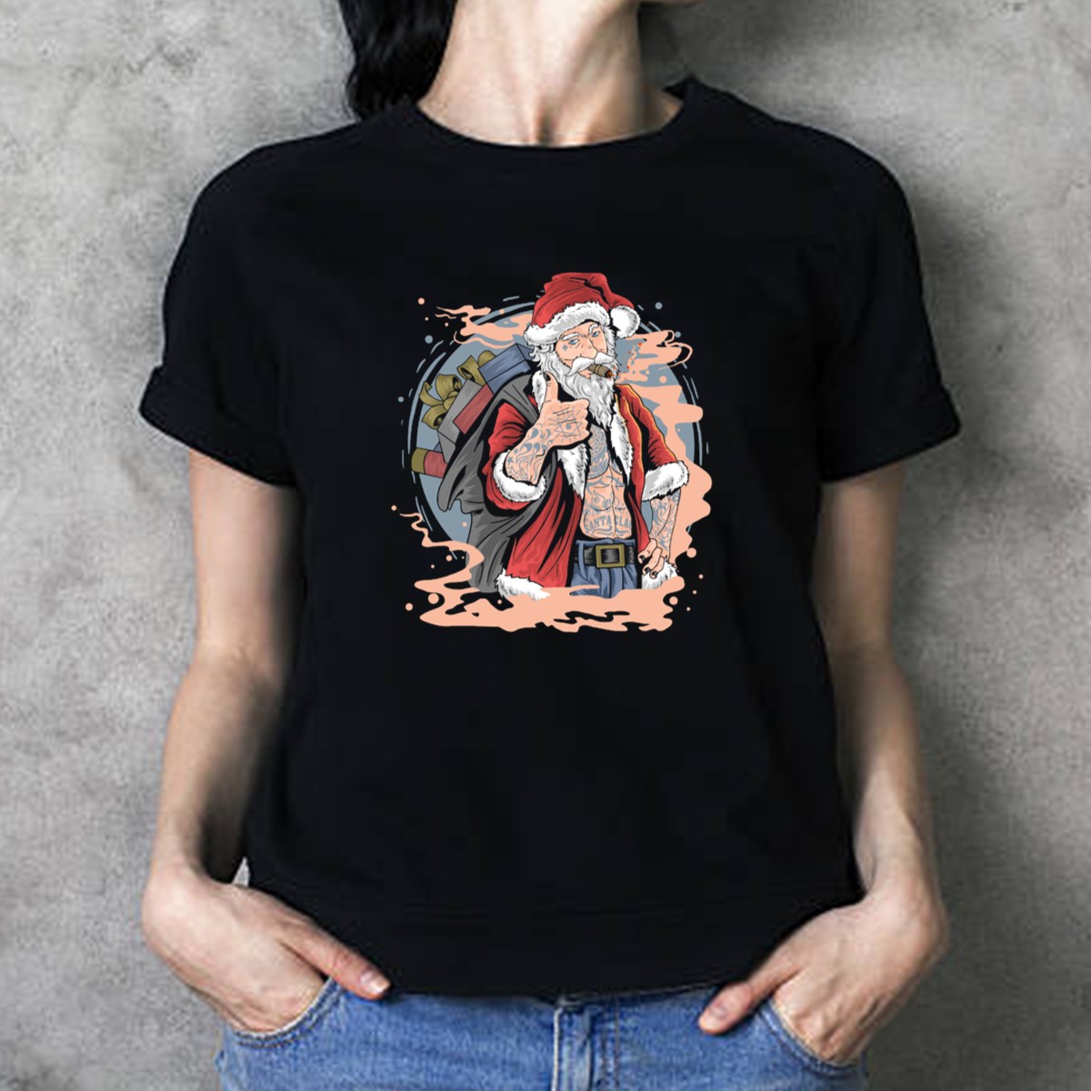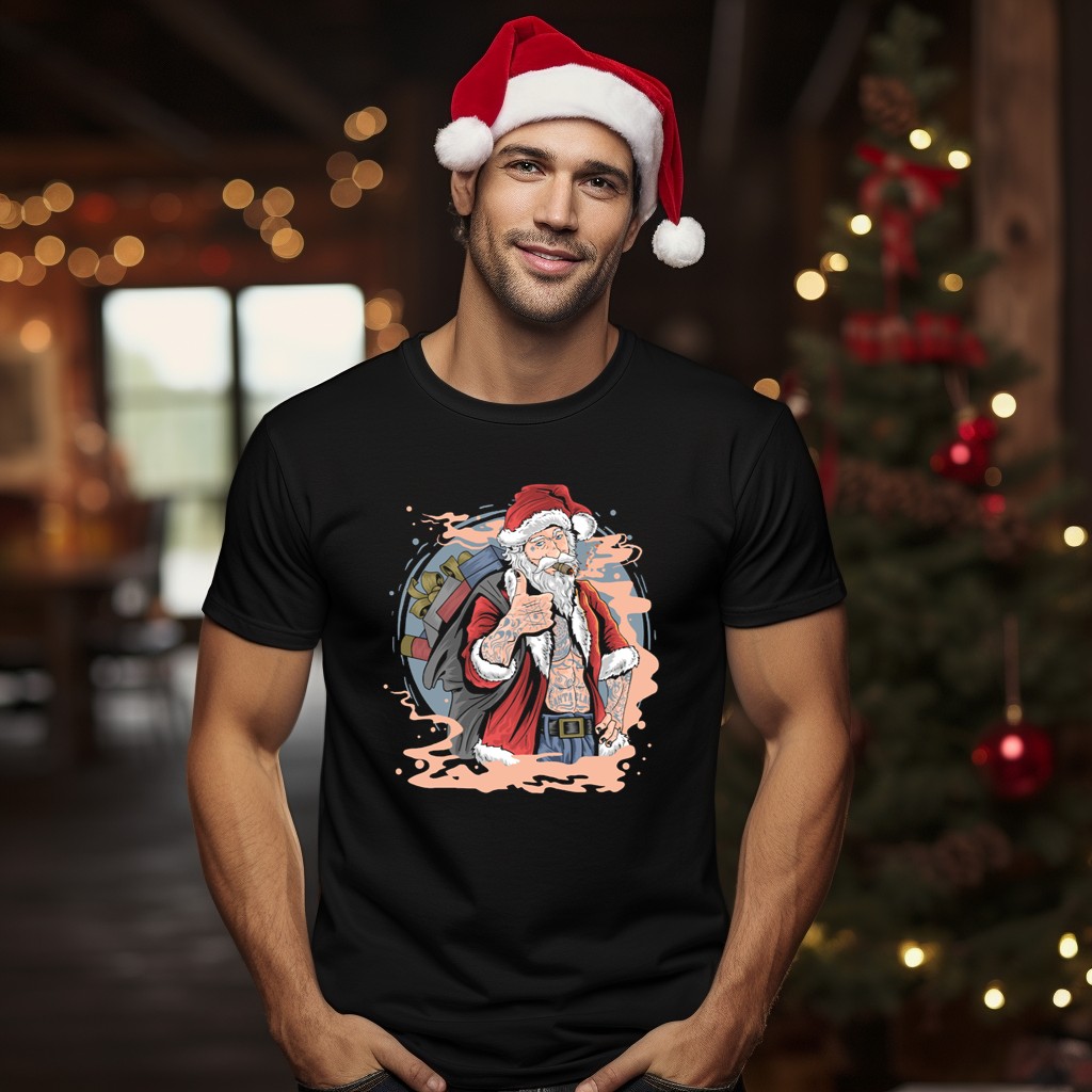 Celebrate the holiday season with our Christmas Santa Claus Smoking Tattooed Holiday Thumbs Up T-Shirt! Perfect for those who love to blend festive cheer with a touch of edgy style, this fan-made design is ideal for casual wear, themed events, or just spreading good vibes during the holidays. Printed in the USA, this unique shirt is sure to turn heads and spark conversations at any gathering.