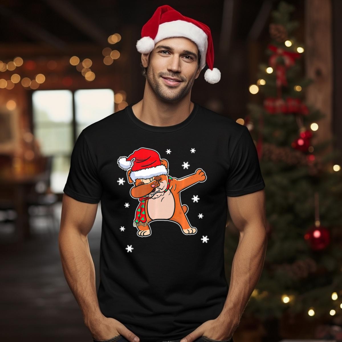 Celebrate the festive season with our Christmas Santa Hat Dabbing Bulldog T-Shirt, a perfect blend of humor and holiday cheer! This fan-made design features an adorable bulldog sporting a Santa hat, bringing a playful twist to your casual wear. Ideal for themed events, holiday gatherings, or just spreading joy during your daily routine, this shirt is bound to become a favorite in your all-season wardrobe. Printed in the USA, it combines quality with a fun, unique flair that will make you stand out!