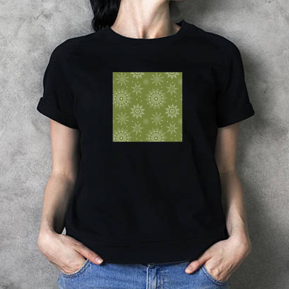 Be the first to review “Christmas Seamless Pattern Simple Green White Mandalas Snowflakes T Shirt 1”