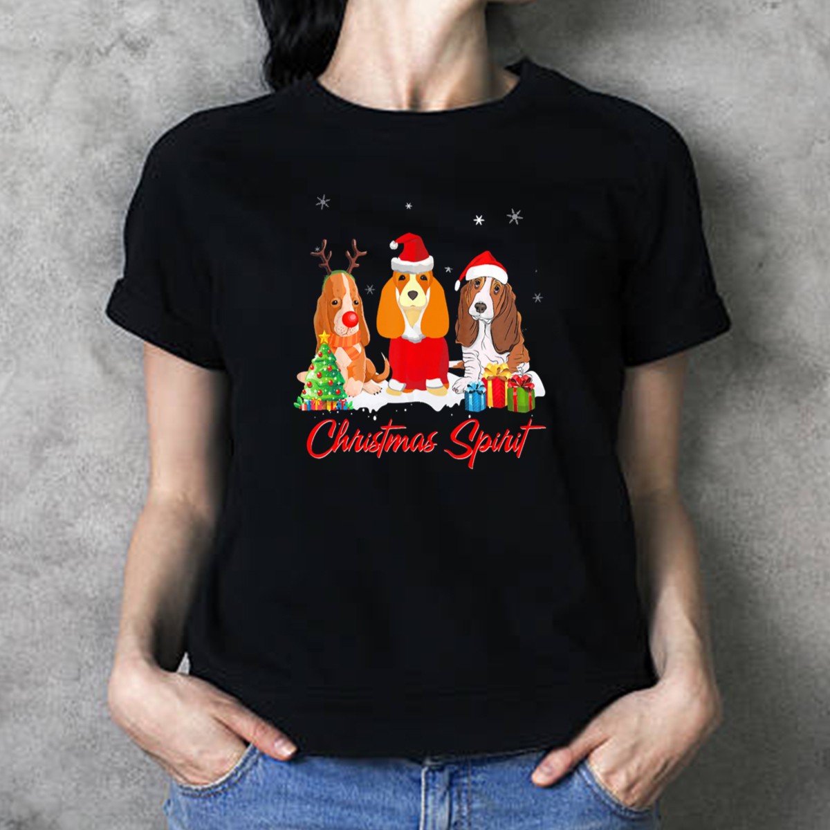 Embrace the festive cheer with our Christmas Spirit Basset Hound Reindeer Santa Presents T-Shirt! Perfect for dog lovers and holiday enthusiasts alike, this charming tee features a whimsical design that showcases the playful spirit of Basset Hounds during the holiday season. Whether you’re attending a family gathering, a themed event, or simply enjoying a cozy day at home, this shirt will keep you looking stylish and feeling comfortable all day long. Made with care and printed in the USA, it’s a unique addition to your holiday wardrobe.