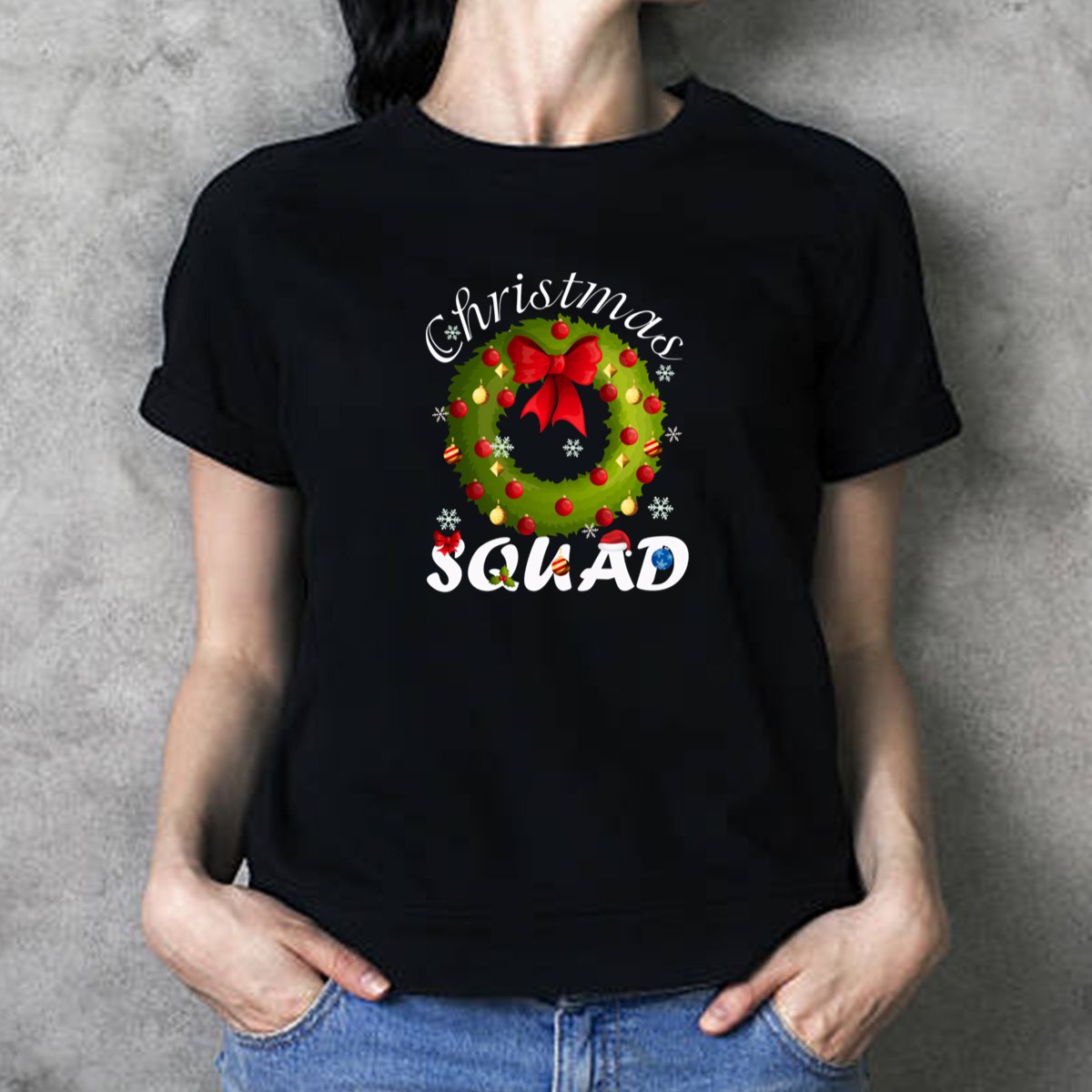 Celebrate the holiday season in style with our Christmas Squad Wreath T-shirt! Perfect for family gatherings, themed events, or just spreading festive cheer, this fan-made design features a charming wreath adorned with a red bow and ornaments. Crafted for comfort and durability, this tee is ideal for anyone looking to showcase their holiday spirit while enjoying casual wear throughout the season.
