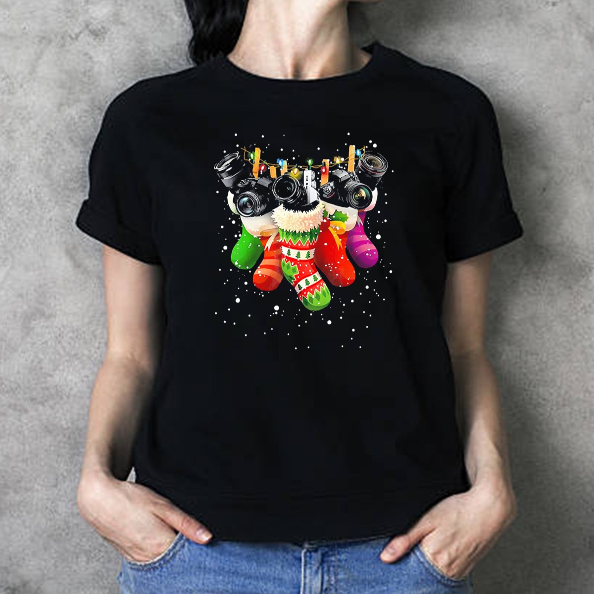 Celebrate the joy of the holiday season with our Christmas Stocking Cameras T-shirt, specially designed for photography lovers who adore capturing festive moments. This unique fan-made design features playful camera graphics nestled in cheerful stockings, making it the perfect addition to your casual wardrobe or themed events. Whether you’re attending a holiday gathering or simply enjoying a cozy day at home, this shirt is sure to spread cheer and showcase your passion for photography.