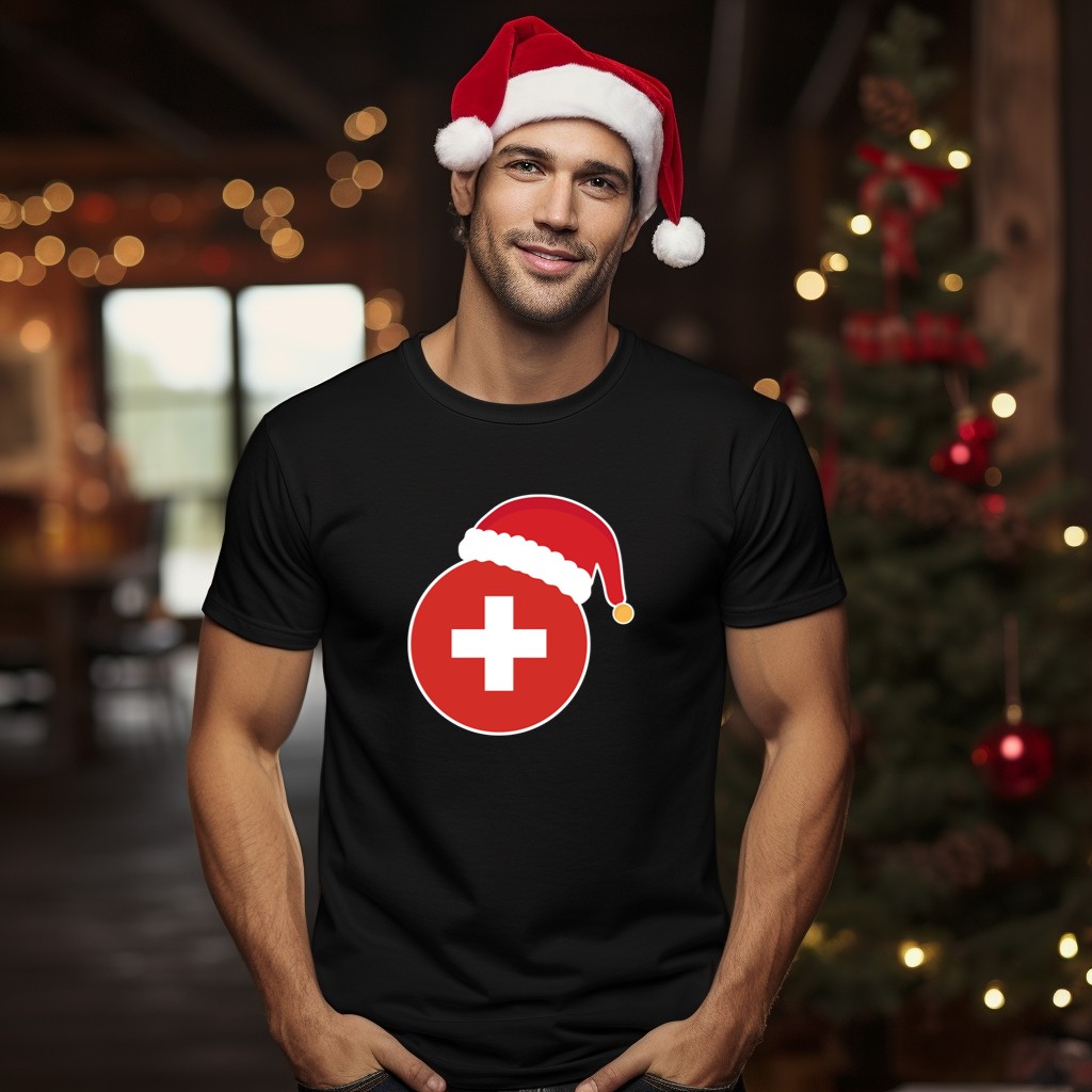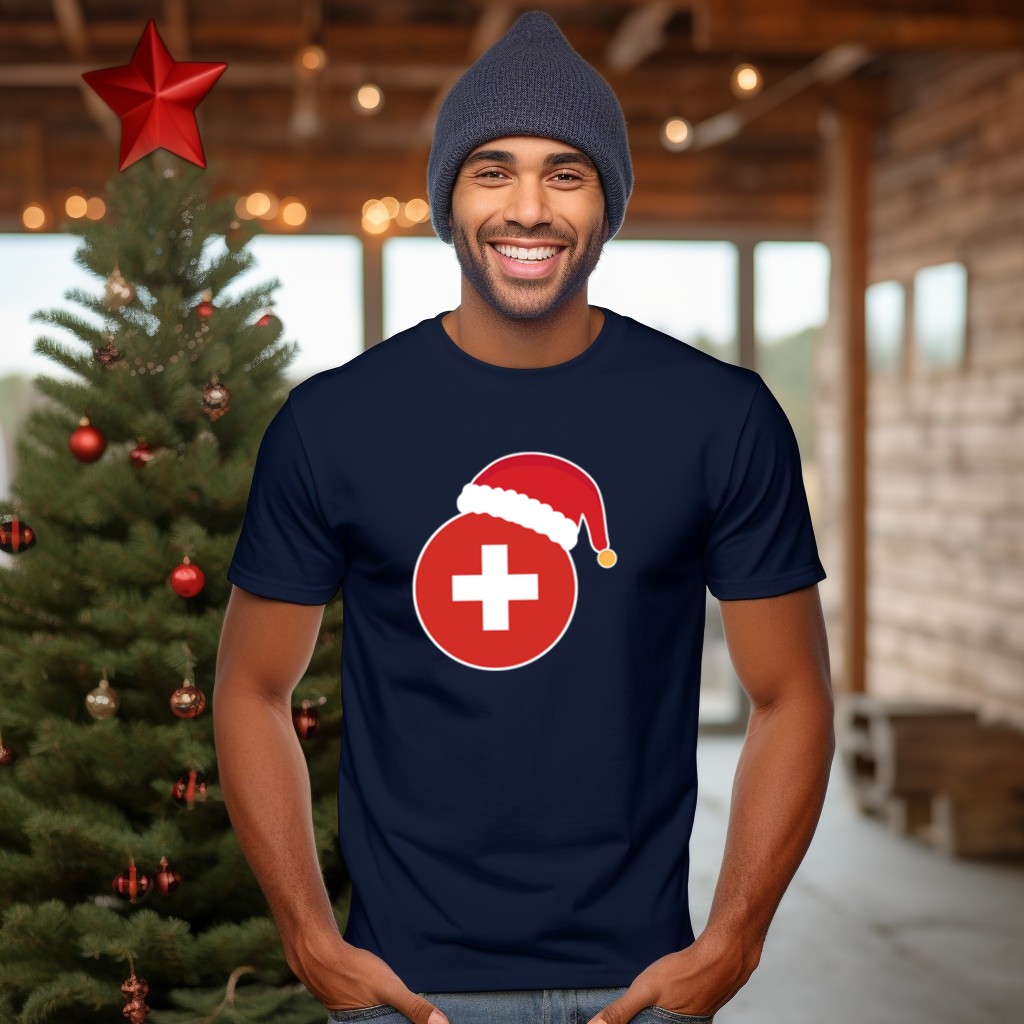 Celebrate the festive season in style with our Christmas Switzerland Flag Santa Claus Hat T-Shirt! Perfect for anyone who loves to showcase their holiday spirit, this shirt is ideal for casual gatherings, themed events, or simply spreading cheer during daily wear. Featuring a unique fan-made design printed in the USA, this T-shirt combines comfort and creativity, making it a must-have addition to your holiday wardrobe.