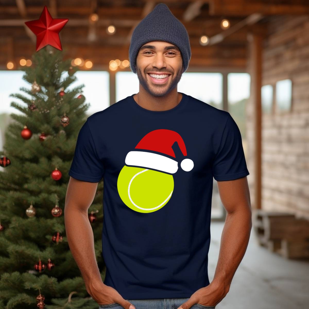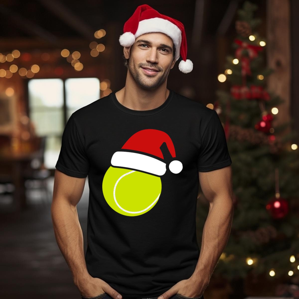 Celebrate the holiday season with our festive Christmas Tennis Ball Santa Hat T-Shirt! Perfect for tennis enthusiasts and holiday lovers alike, this unique fan-made design adds a playful twist to your casual wardrobe. Whether you’re hitting the courts, attending themed events, or just enjoying daily wear, this shirt is a fun way to combine your passion for tennis with the joy of Christmas. Printed with care in the USA, it’s a must-have for those looking to spread cheer and style this season.
