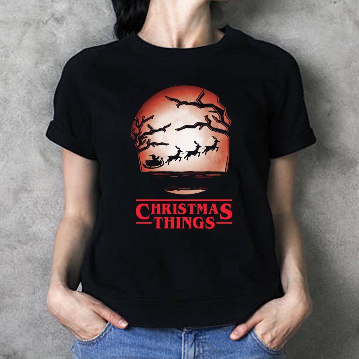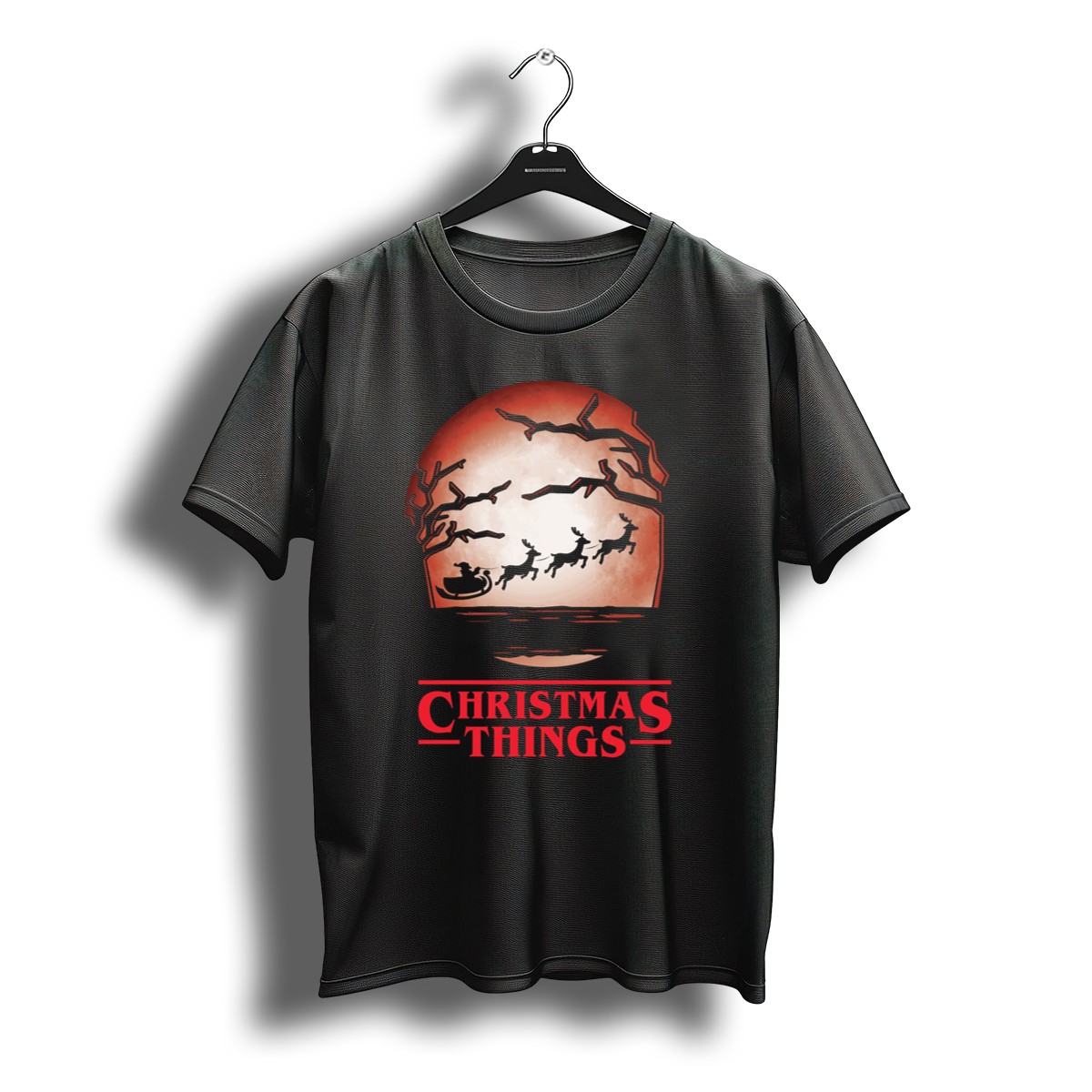 Celebrate the magic of the holiday season with our Christmas Things Santa Sleigh Silhouetted Against Red Moon With Trees T-Shirt! This fan-made design captures the enchanting spirit of Christmas, making it a perfect choice for anyone who loves festive themes. Ideal for casual wear, themed events, or just spreading holiday cheer during daily activities, this shirt combines comfort and style with a unique artistic flair that will surely turn heads.