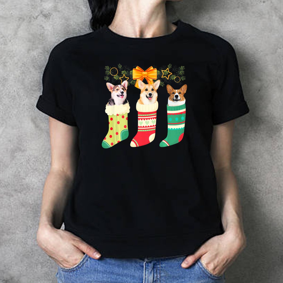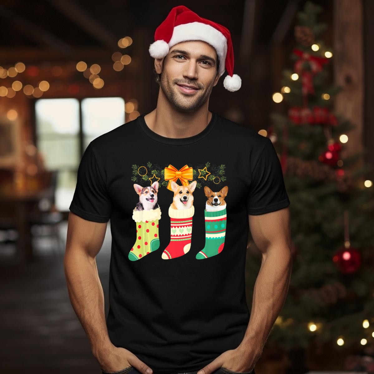 Celebrate the festive season in style with our Christmas Three Corgi In Sock T-Shirt! This adorable fan-made design features three playful corgis nestled in a festive sock, complete with holiday stockings and a cheerful bow. Perfect for dog lovers and anyone looking to spread holiday cheer, this shirt is ideal for casual wear, themed events, or just cozying up at home during the holidays. Printed in the USA, it’s a unique and delightful addition to your all-season wardrobe.