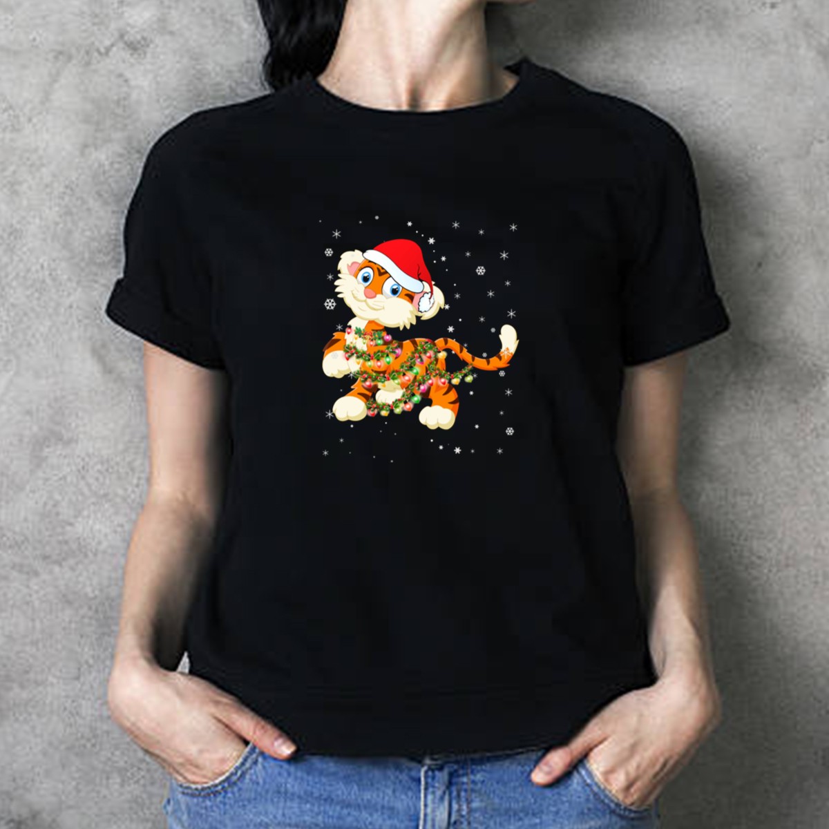 Embrace the holiday spirit with our Christmas Tiger With Santa Hat And Holiday Lights T-Shirt! This fun and festive tee is perfect for animal lovers and anyone looking to add a touch of whimsy to their seasonal wardrobe. Whether you’re attending a holiday party, decorating the tree, or simply enjoying a cozy day at home, this unique fan-made design will surely spread cheer and put a smile on everyone’s face. Made in the USA, it’s a delightful addition to your all-season collection.
