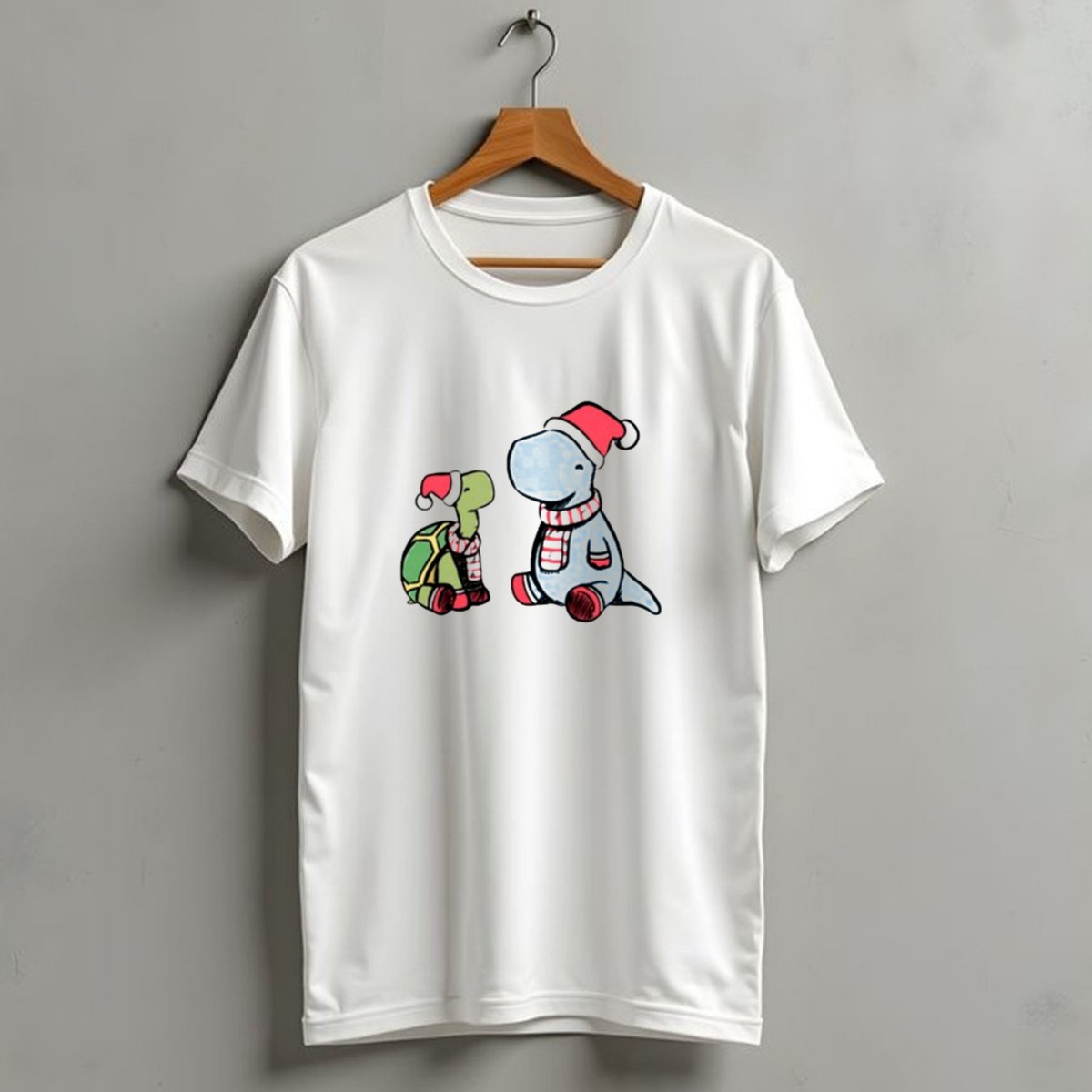 Be the first to review “Christmas Tortoise And Dino Santa Hats And Scarves T Shirt”