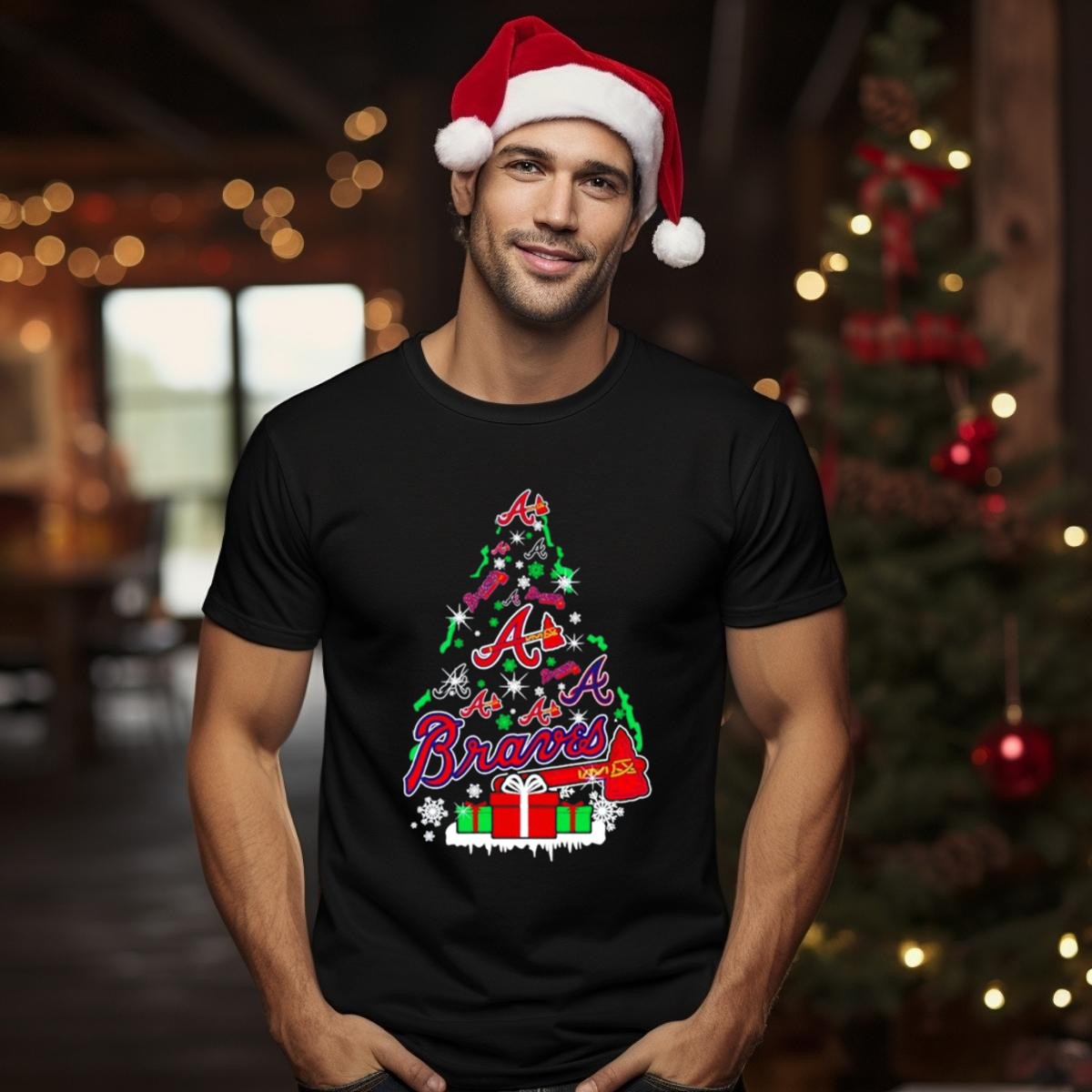 Christmas Tree Atlanta Braves Bravesword Santa Hat Baseball Snowflakes T Shirt