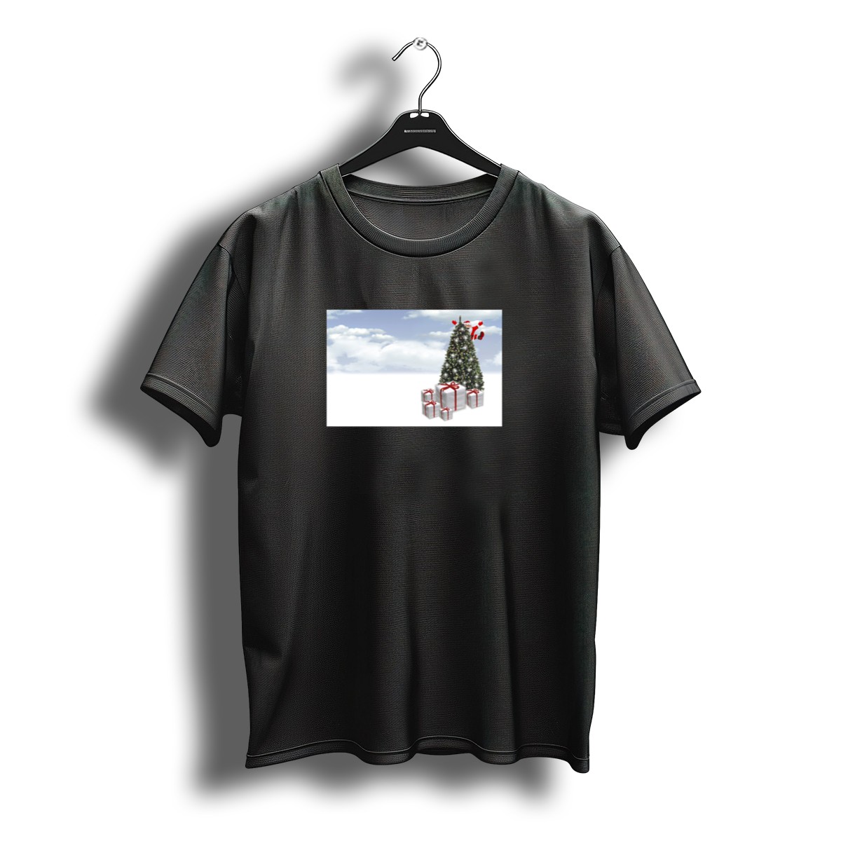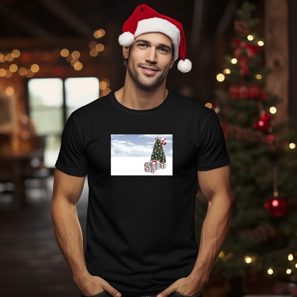 Celebrate the magic of the holidays with our Christmas Tree Santa Flying Above Gift Boxes In Snowy Sky T-Shirt! Perfect for festive gatherings, family get-togethers, or just spreading some yuletide cheer, this fan-made design captures the spirit of Christmas in a fun and whimsical way. Made for anyone who loves to embrace the holiday season, this shirt is not only stylish but also comfortable, making it a delightful addition to your wardrobe.