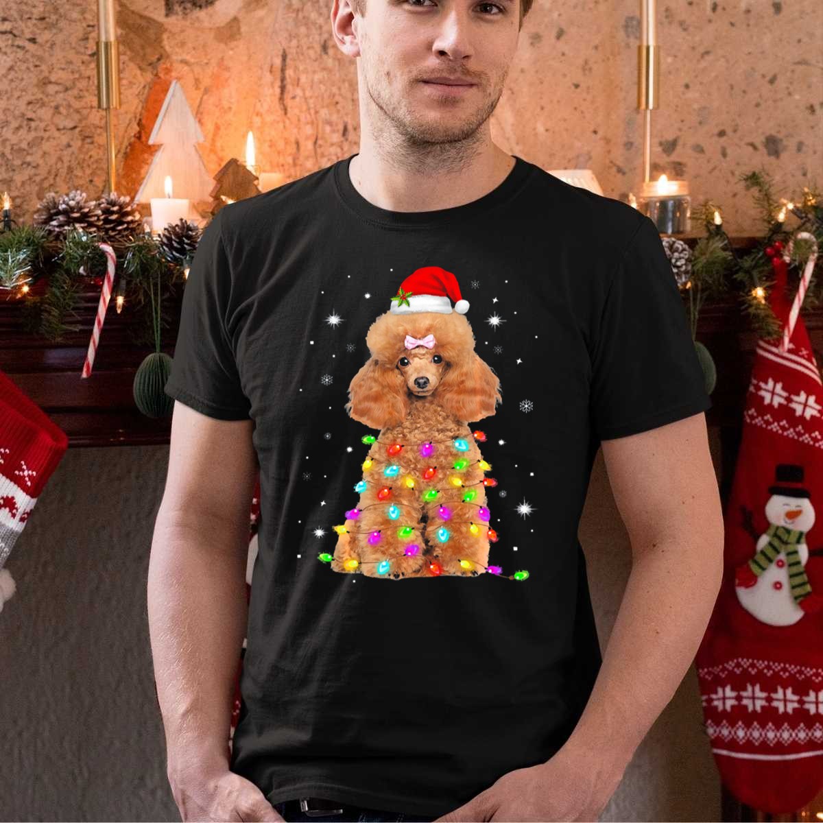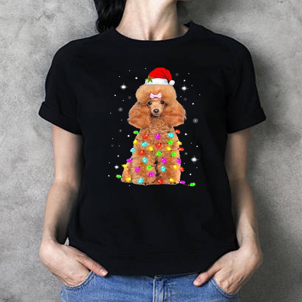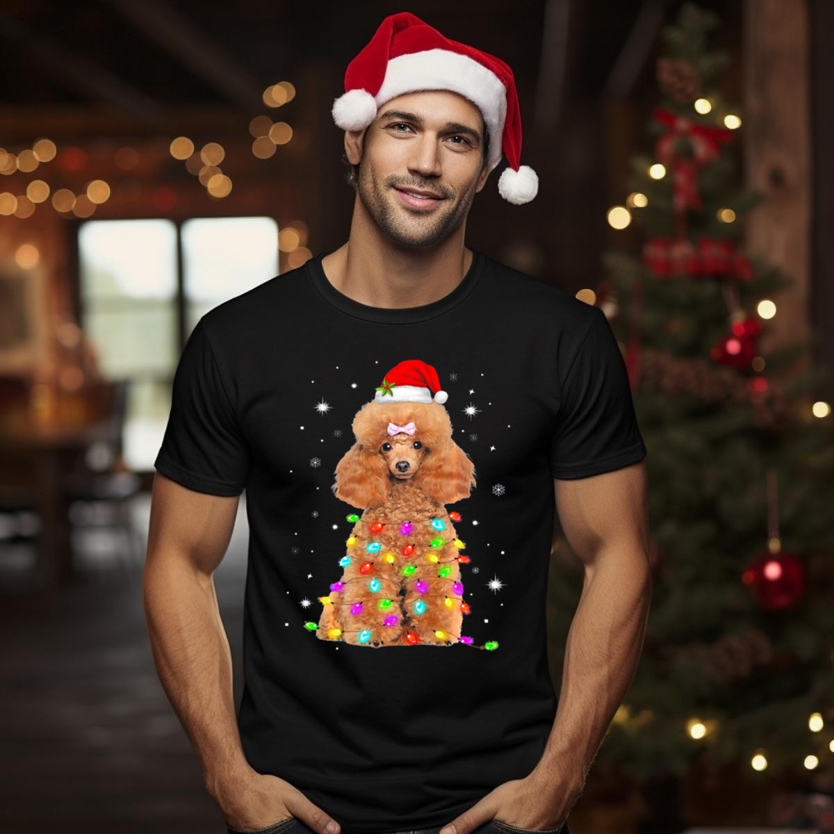Embrace the festive spirit with our charming Christmas With French Poodle Dog Wrapped In Festive Lights T-Shirt! Perfect for dog lovers and holiday enthusiasts alike, this shirt features an adorable graphic that captures the joy of the season. Ideal for casual outings, themed events, or simply spreading cheer during your daily wear, this fan-made design is printed in the USA, making it a unique addition to your holiday wardrobe.