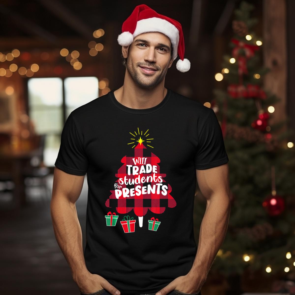 Celebrate the holiday spirit with our Christmas Women Teacher Will Trade Students For Presents T-Shirt! This fun and lighthearted design is perfect for teachers who want to bring a smile to their classroom during the festive season. Ideal for casual wear, themed events, or daily activities, this shirt combines comfort with a touch of humor, making it a great gift for educators who appreciate a good laugh while spreading holiday cheer. Proudly printed in the USA, this fan-made design is a unique addition to any teacher’s wardrobe.