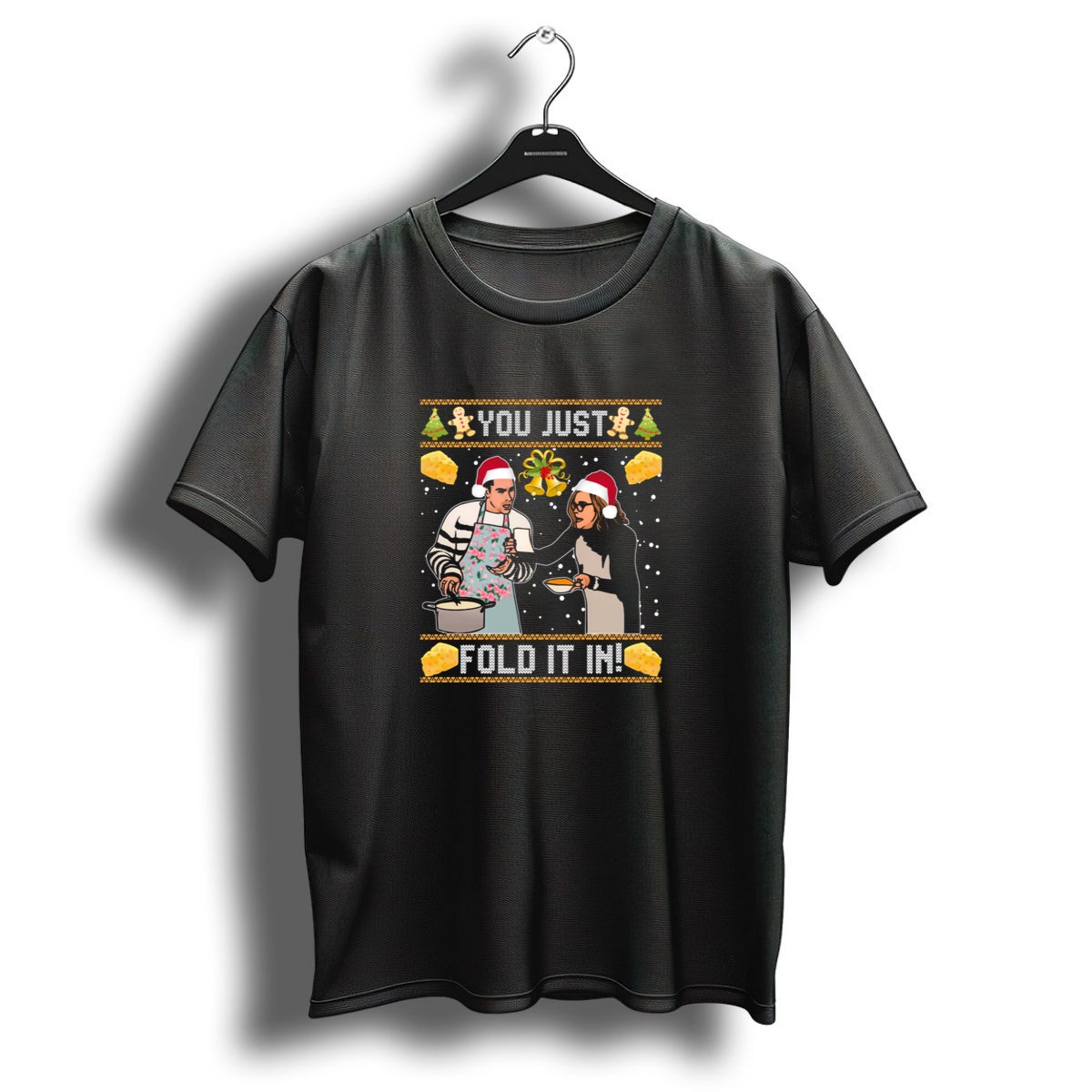 Celebrate the holiday season with our Christmas You Just Fold It In Santa Hat Cooking Scene Holiday T-Shirt! Perfect for festive gatherings, family parties, or cozy nights at home, this shirt is designed for those who love to embrace the spirit of Christmas with a fun and lighthearted twist. Made for everyone, this fan-made design showcases a whimsical cooking scene that will surely bring smiles and cheer to any occasion. Printed in the USA, it combines quality craftsmanship with holiday charm, making it a unique addition to your seasonal wardrobe.