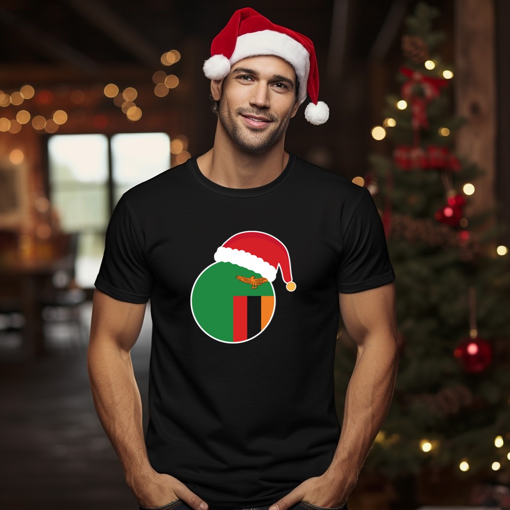 Celebrate the festive spirit of Zambia with our Christmas Zambia Flag Santa Claus Hat T-Shirt! Perfect for anyone who wants to showcase their love for Zambia during the holiday season, this T-shirt is ideal for casual wear, themed events, or just spreading holiday cheer in your daily routine. Made with a fan-made design printed in the USA, it combines comfort with festive flair, making it a unique addition to your wardrobe.