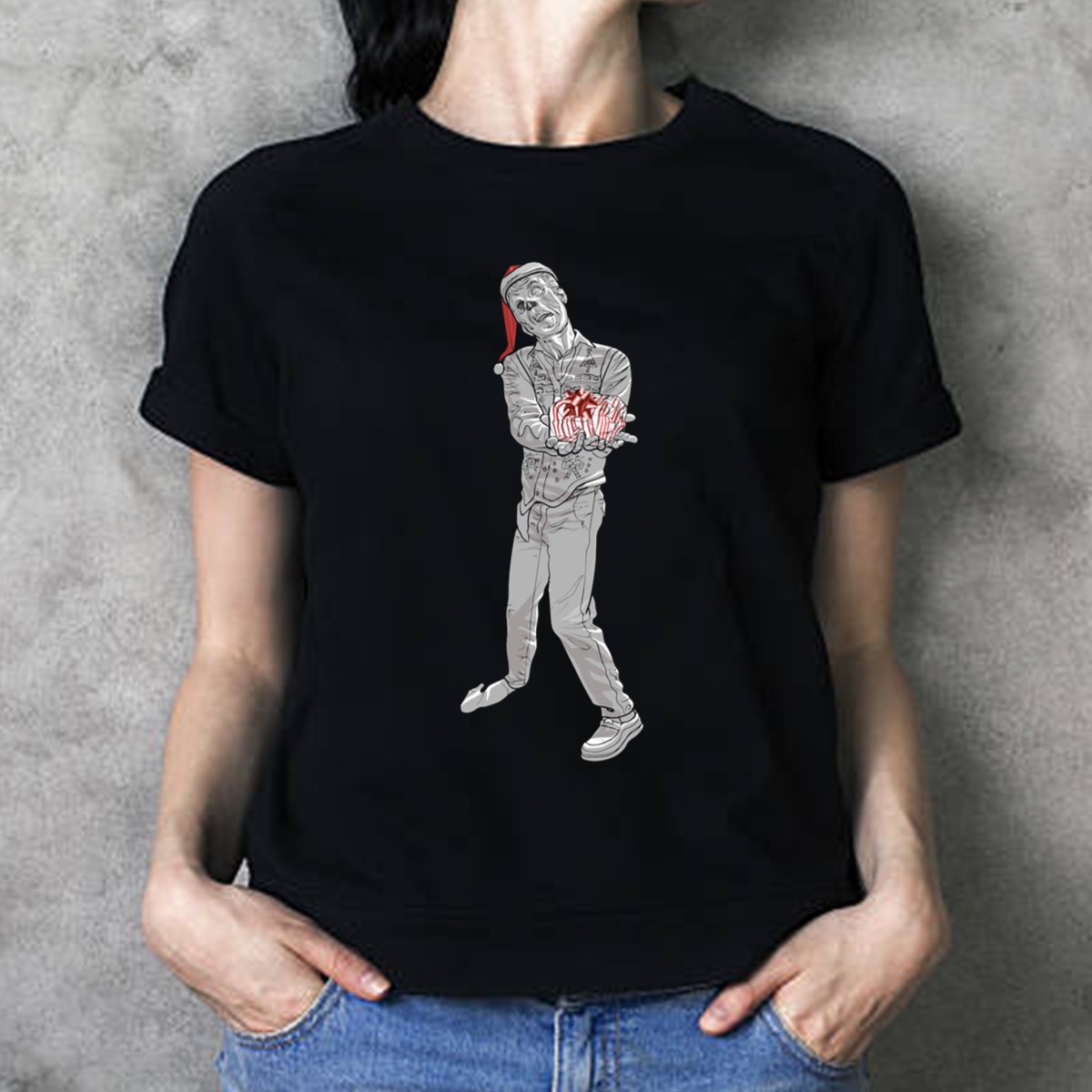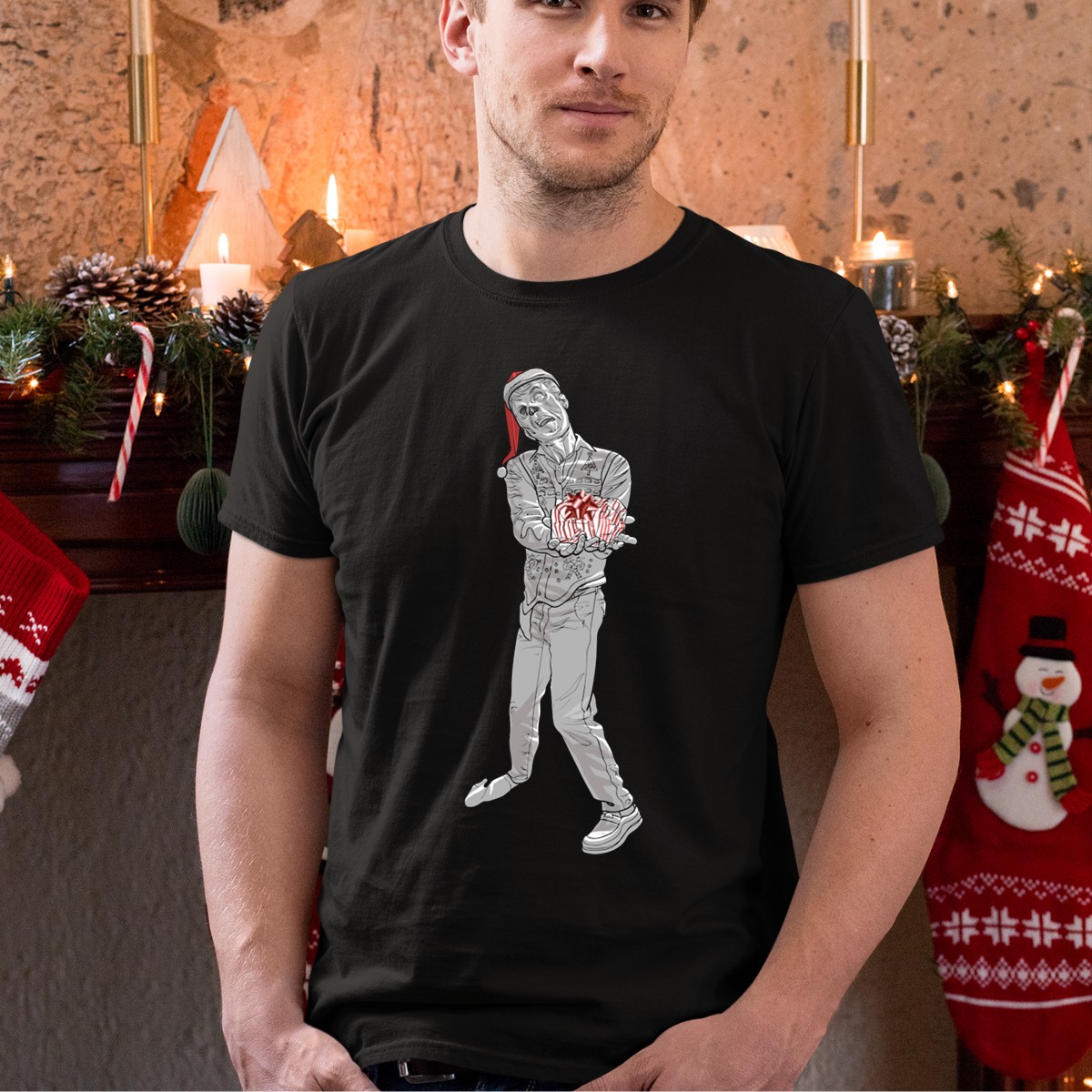 Get into the festive spirit with our Christmas Zombie Santa T-Shirt! Perfect for those who love to combine holiday cheer with a dash of humor, this shirt features a unique fan-made design of a zombie Santa wearing a hat and holding a present. Ideal for casual outings, themed parties, or just spreading some holiday joy, this shirt is a must-have for anyone looking to stand out during the season. Made with comfort and style in mind, it’s sure to be a conversation starter at any gathering!