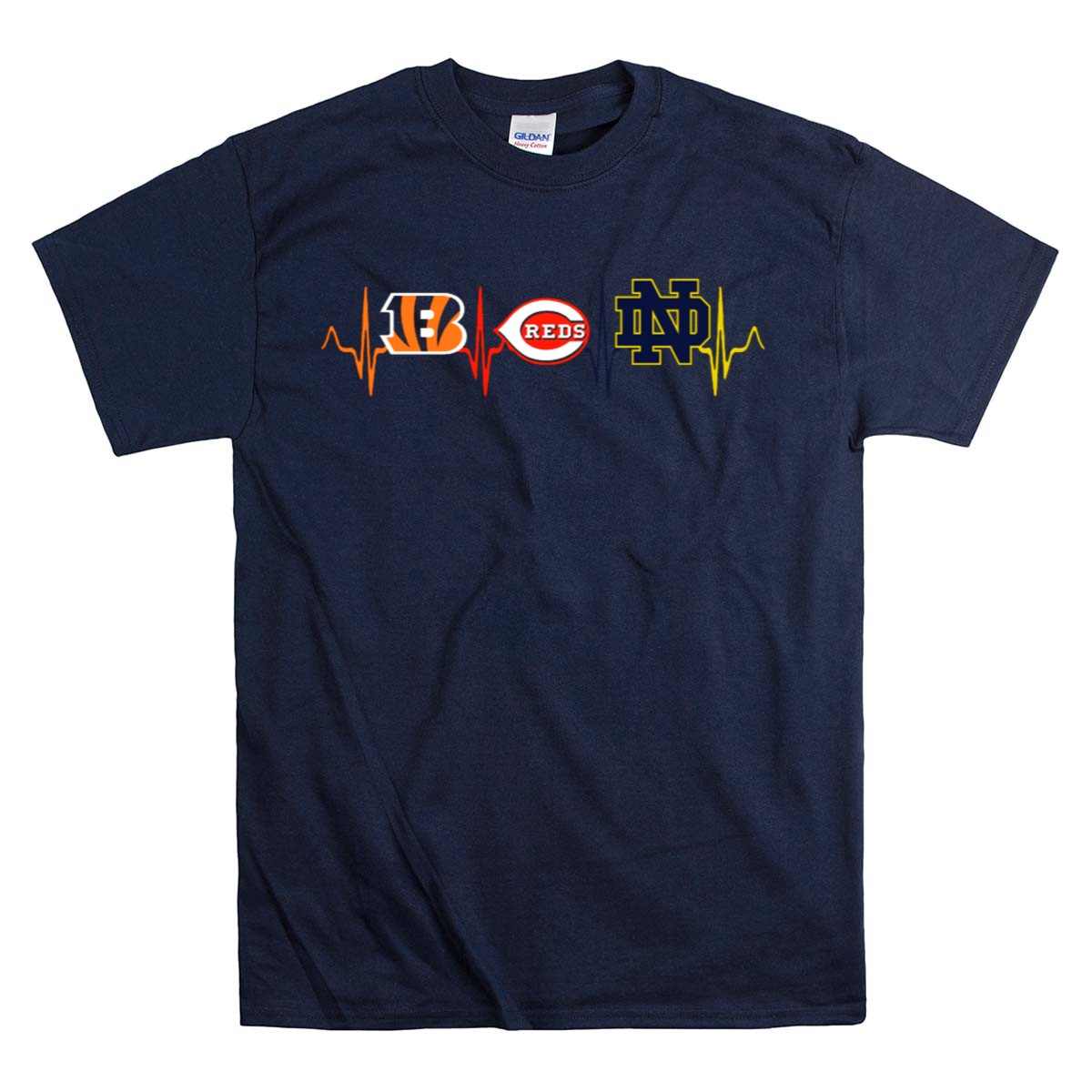 Show your love for the Cincinnati Bengals, Ohio Reds, and Notre Dame Fighting Irish with this eye-catching Heartbeat T-Shirt! Perfect for passionate fans, this shirt captures the energy of game day, making it an ideal choice for casual outings, themed events, or just hanging out with friends. The unique fan-made design, printed in the USA, sets you apart while ensuring you stay comfortable and stylish throughout the season.