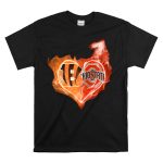 Show your passion for the Cincinnati Bengals and Ohio State Buckeyes with this vibrant Fire Heart T-Shirt. Perfect for fans who want to celebrate their teams in style, this shirt is designed for casual wear, themed events, or just hanging out with friends. Made with love and printed in the USA, it features a unique fan-made design that showcases your team spirit while ensuring comfort and durability.
