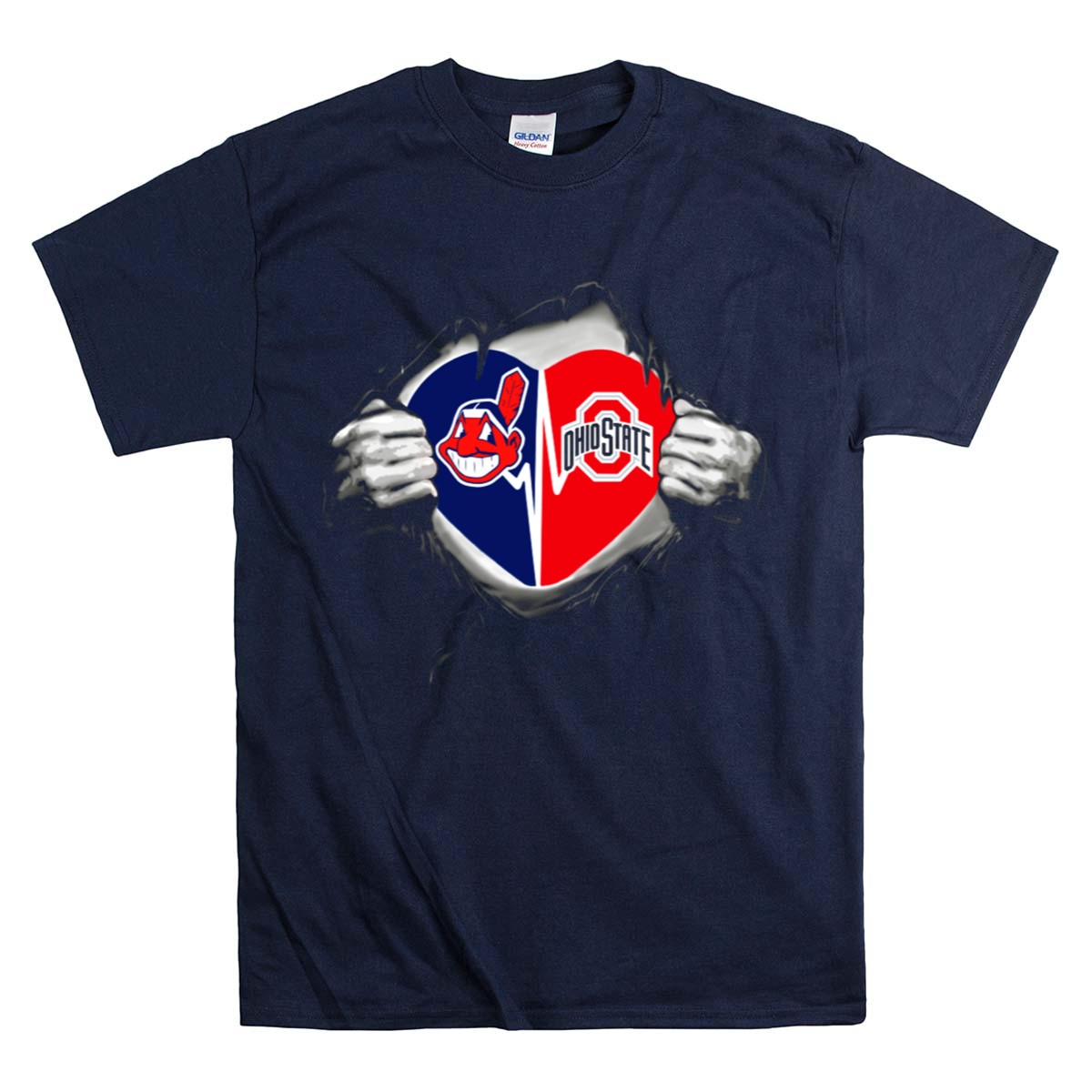 Be the first to review “Cleveland Indians Chief Wahoo Logo And Ohio State Buckeyes Split Heart Tear T Shirt”