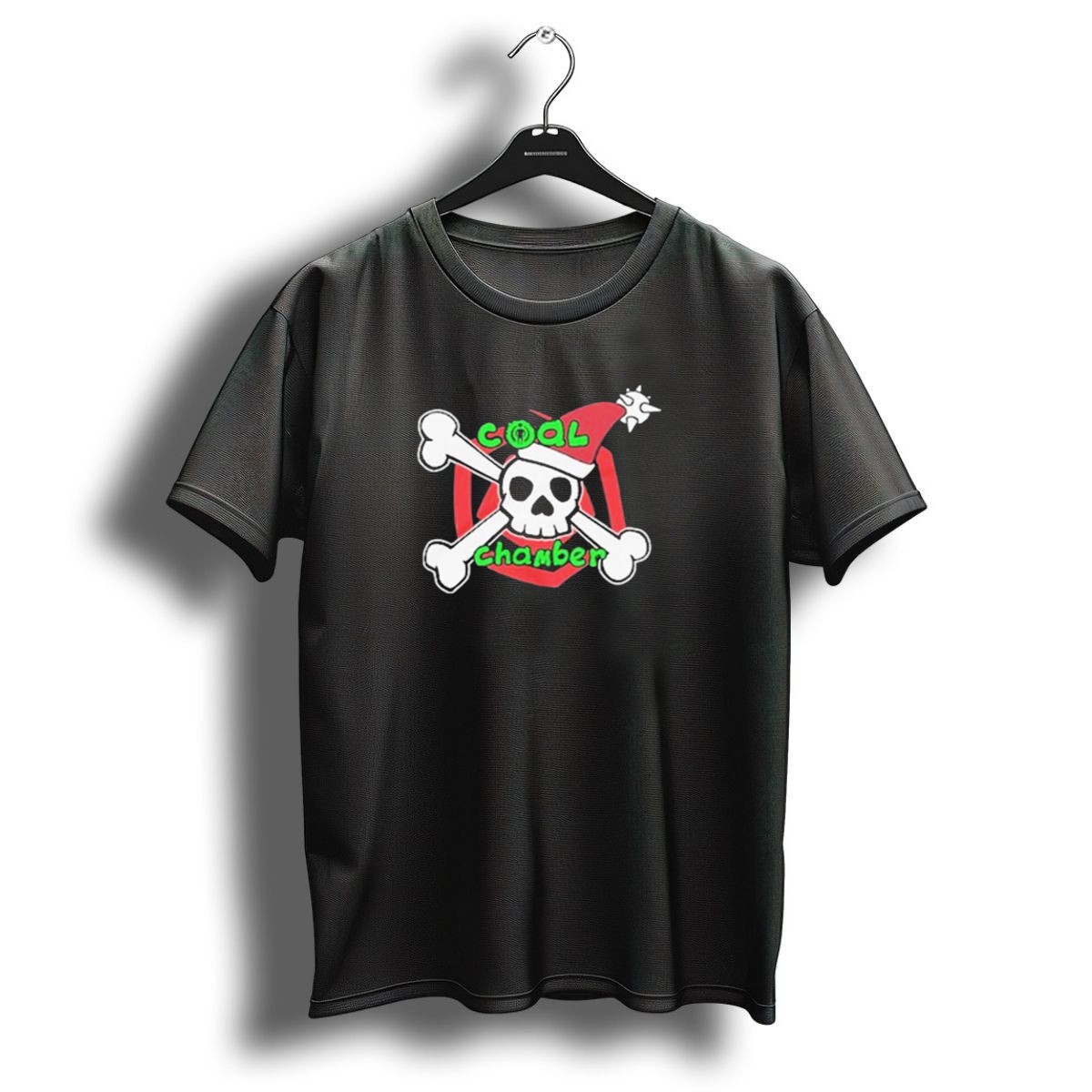 Get into the holiday spirit with a twist! The Coal Chamber Christmas Skull Santa Hat Bones T-Shirt is perfect for metalheads and music lovers who want to showcase their unique style during the festive season. Made for casual wear, themed events, or just lounging around, this eye-catching tee combines a classic fit with a fan-made design that celebrates your favorite band in a fun and edgy way. Printed in the USA, this shirt is not only a fashion statement but also a conversation starter!